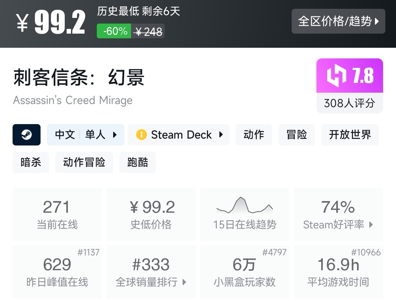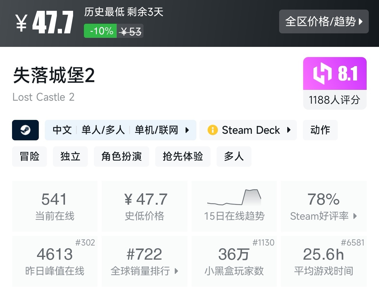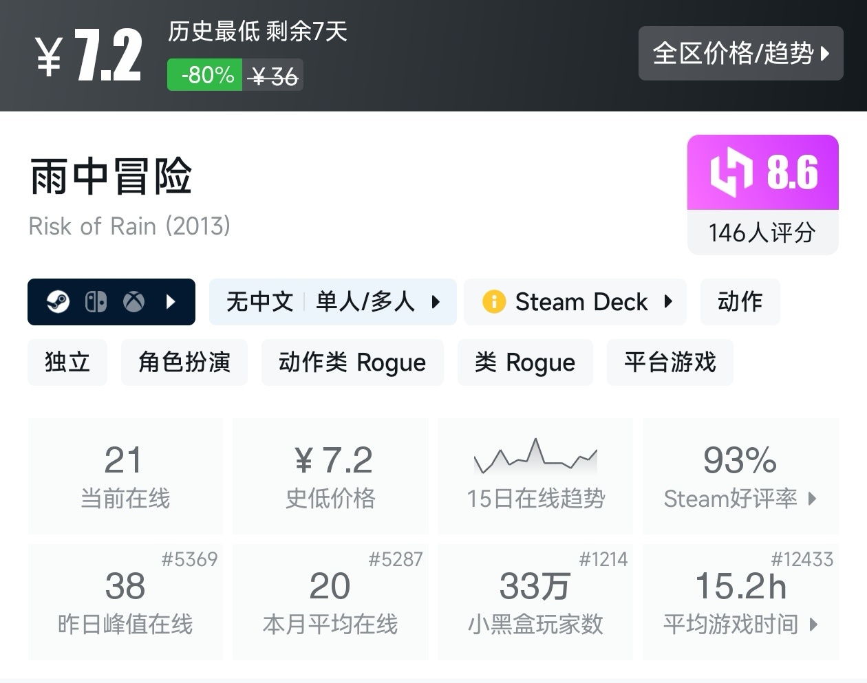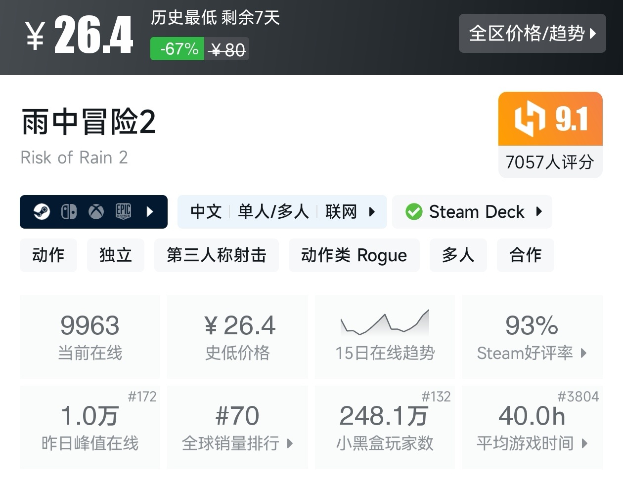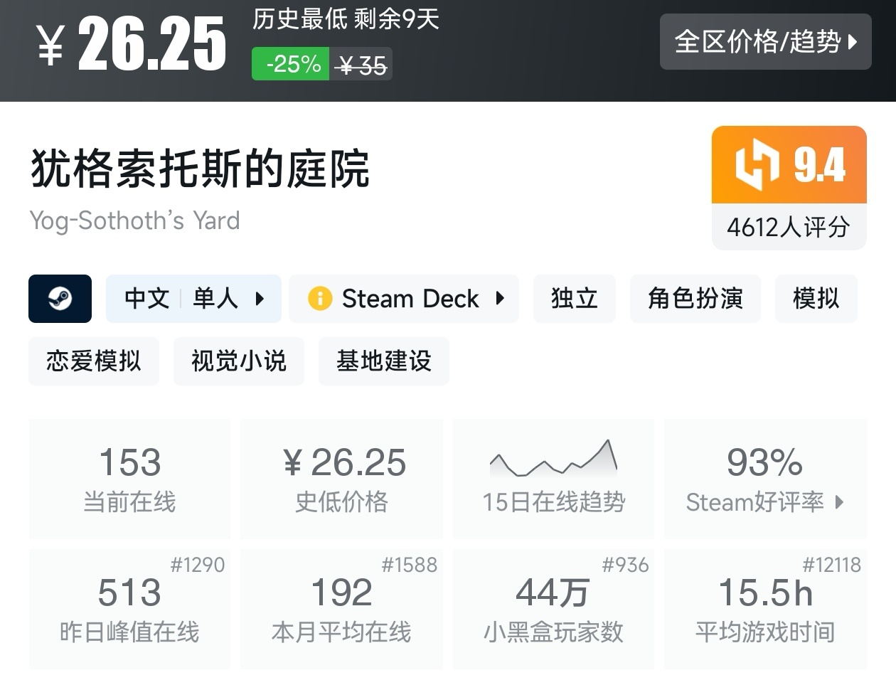 大家好,没错,又是我,你们的老朋友亦然,最近有很多游戏都正在史低,其中还有不少的史低游戏,当然,在史低游戏中还有很多高分好评游戏,甚至说人气大作,其实游戏在史低买就是最香,因为史低游戏不容易被背刺,我将为各位进行一个汇总,希望我的汇总,能够帮助各位盒友挑选心仪的游戏。