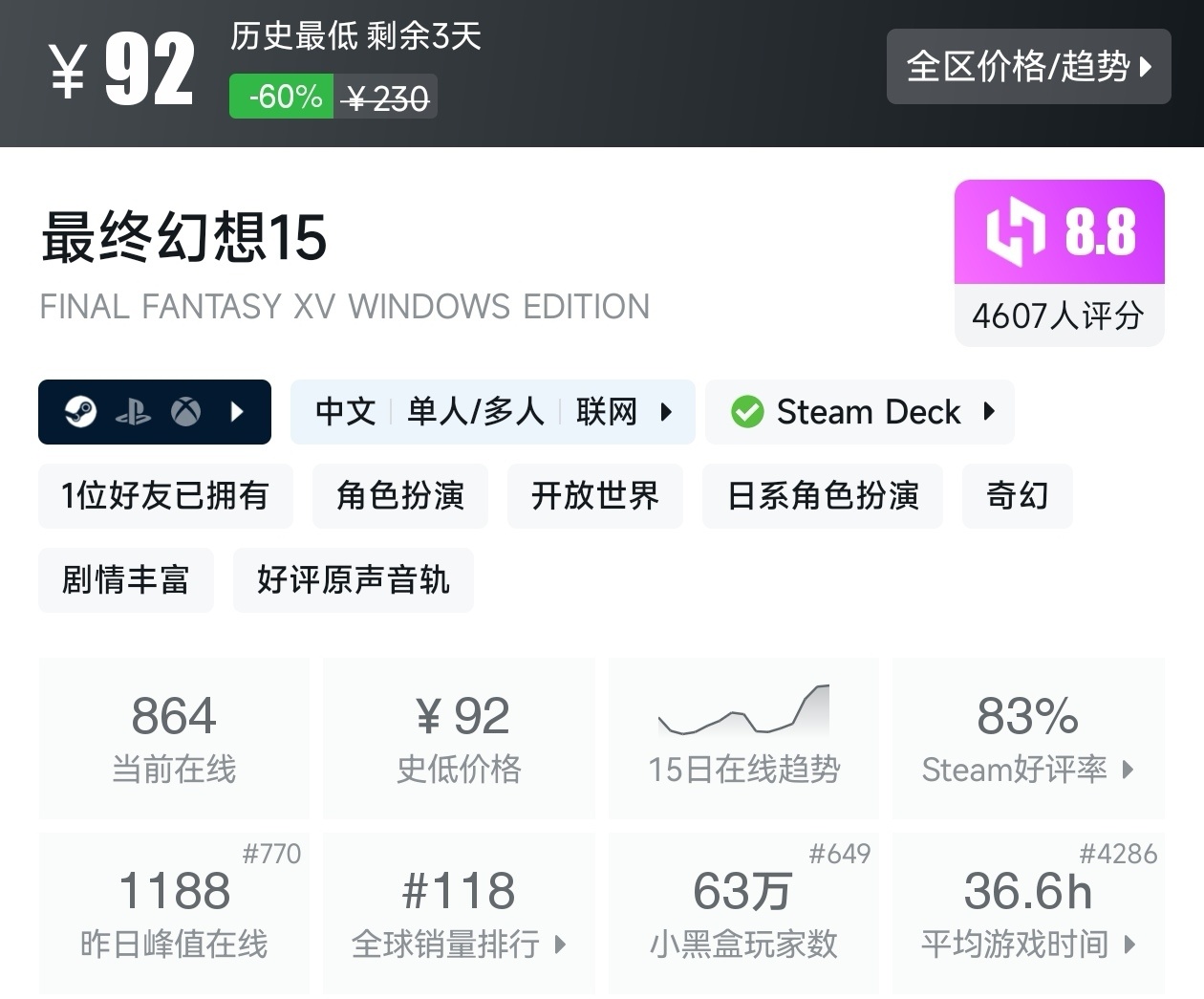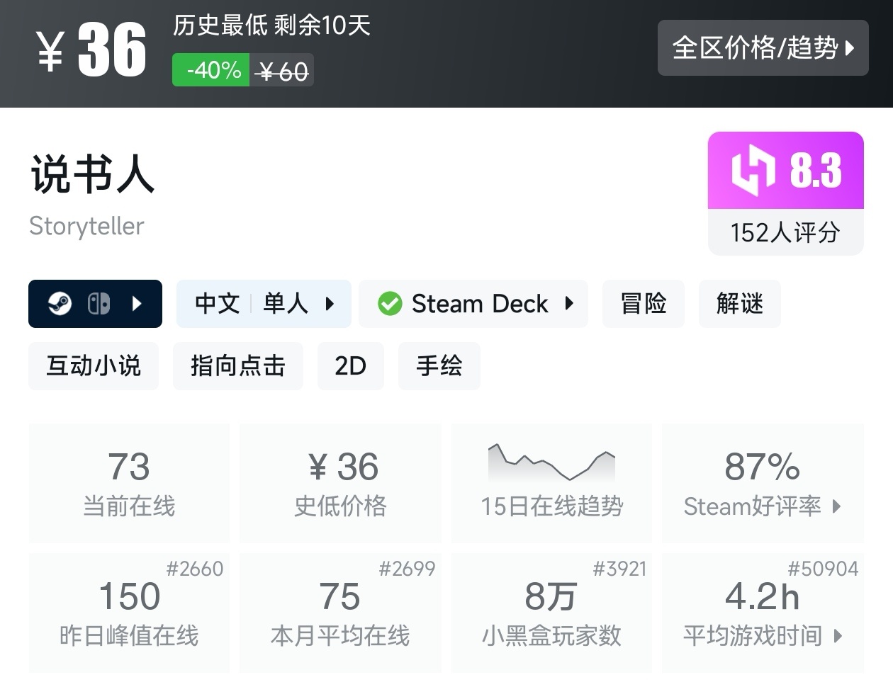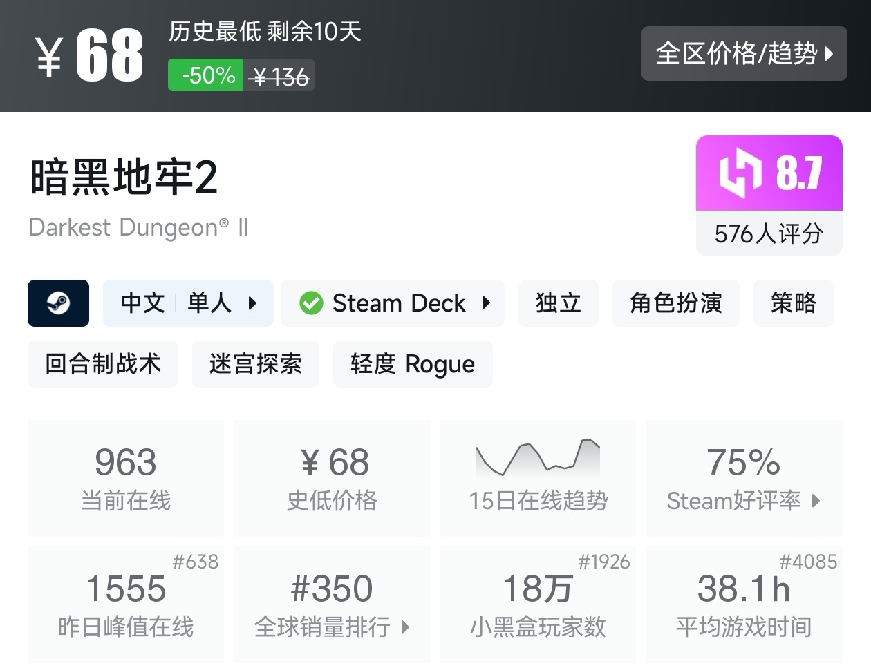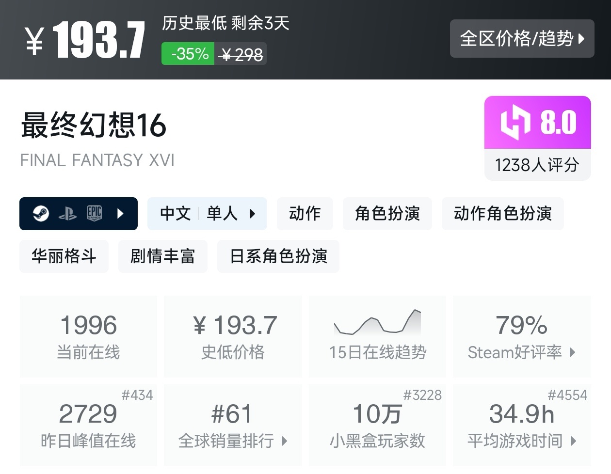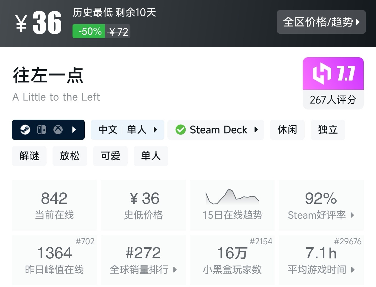 大家好,没错,又是我,你们的老朋友亦然,最近有很多游戏都正在史低,其中还有不少的史低游戏,当然,在史低游戏中还有很多高分好评游戏,甚至说人气大作,其实游戏在史低买就是最香,因为史低游戏不容易被背刺,我将为各位进行一个汇总,希望我的汇总,能够帮助各位盒友挑选心仪的游戏。