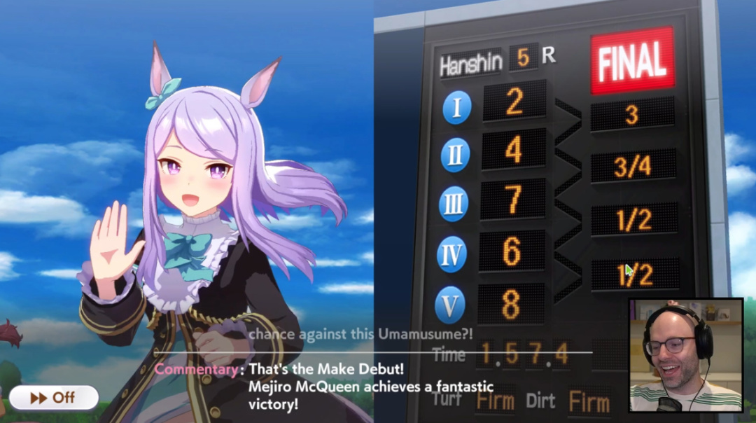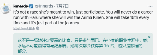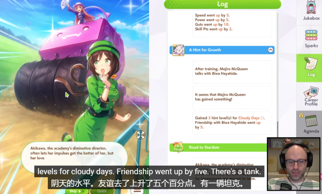 慢慢地,Northernlion在觀衆的操控下逐漸理解了遊戲玩法並樂在其中,每場比賽都捨不得快進。這個直播間就像是真正的馬場,哪怕大家都知道勝負結果早由數值決定,也會因爲馬娘們憑藉技能超車、翻盤而喝彩。