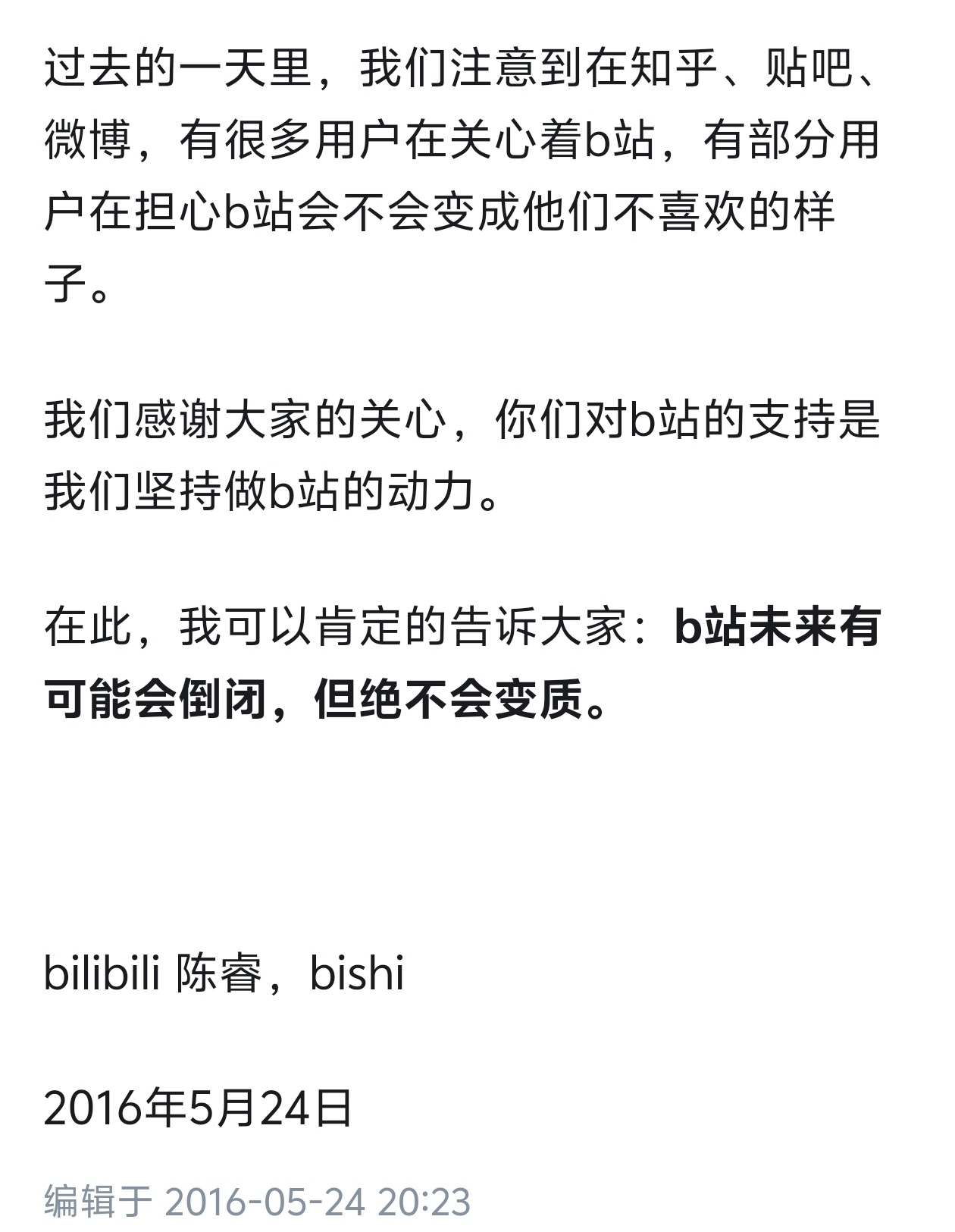 不论对错,没有陈睿就没有今天的b站,但正是因为陈睿,b站才变成今天这个样子。