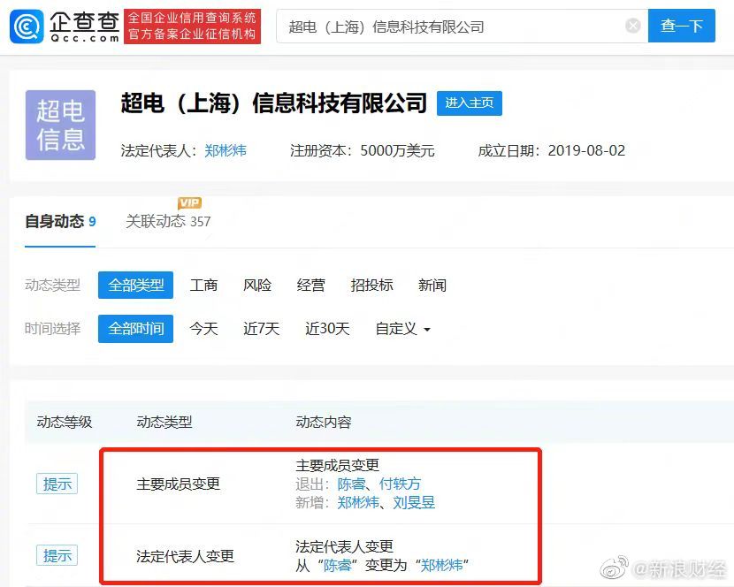 也许是宫斗失败被踢出去了,也许是知道自己早就失去了本心。2023年5月,陈睿不再担任超电(上海)信息科技有限公司法定代表人、执行董事、总经理,转战游戏业务去了。