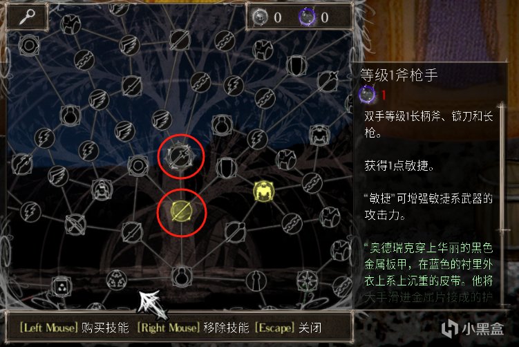 最后再来跟大家聊聊技能树,这是为什么会出现各种流派的原因。每个武器或者部分盔甲都需要专精才能使用,当没有专精时,是无法使用或者有巨大惩罚。