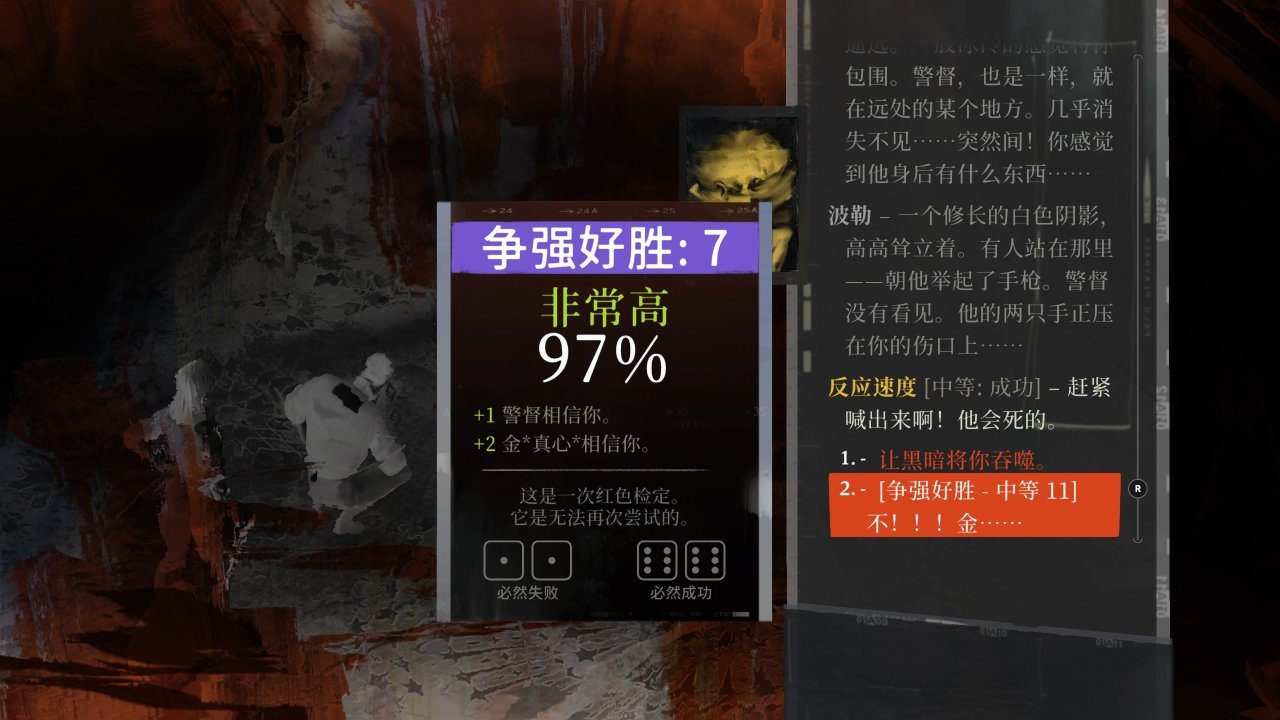 依舊是隨便過並於此處關鍵節點選擇提醒金,過爭搶好勝檢定成功(重要)