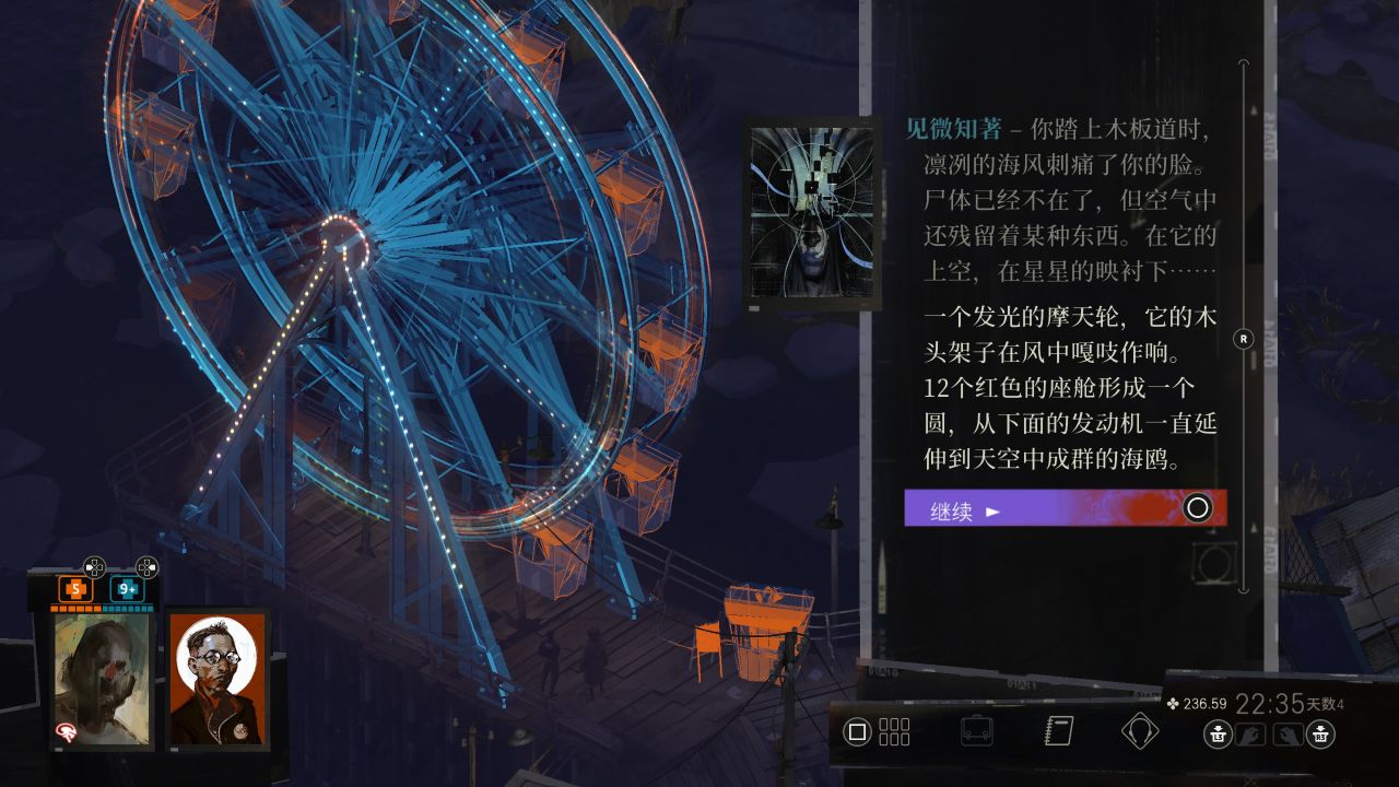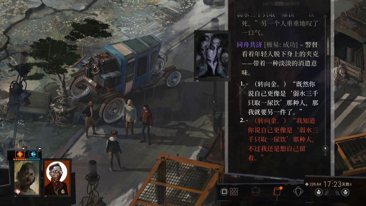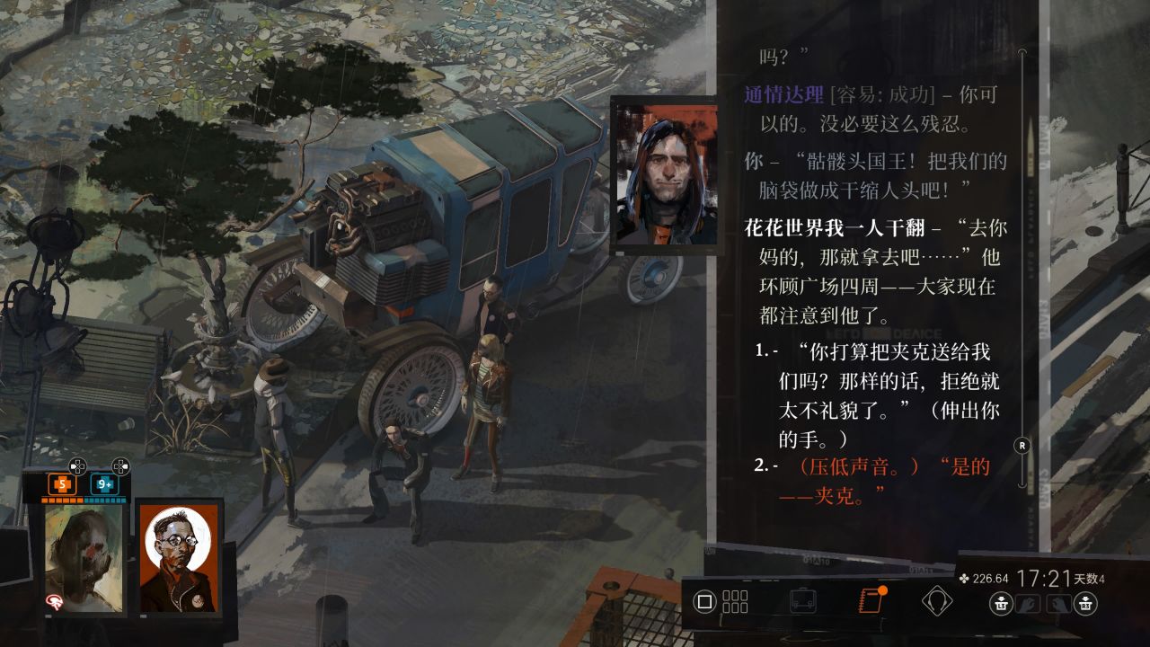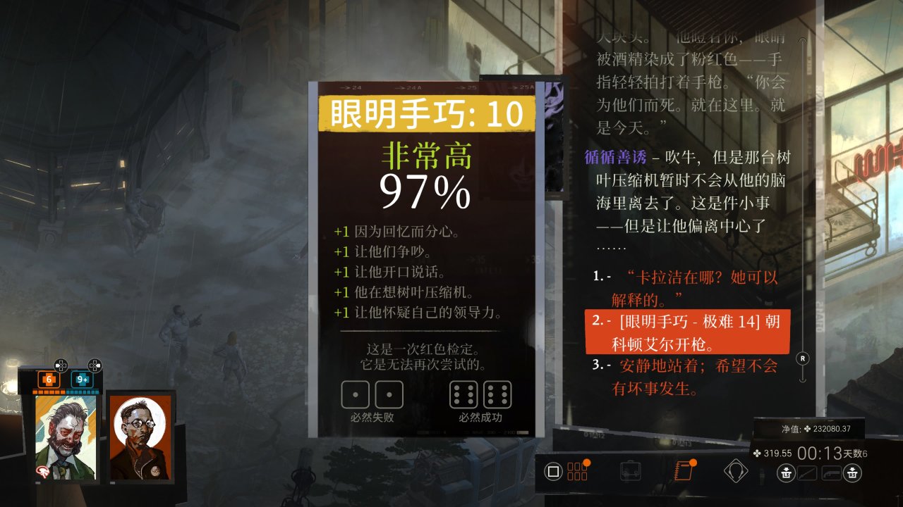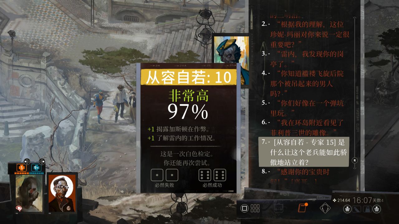 *第四天本流程加點這裏會觸發黃色思維球,發現羅斯馬雷玩投擲球有作弊行爲,順序建議是先過羅斯馬雷檢定成功要到巨大三明治,之後揭穿他的作弊行爲,再配合裝備過雷內的檢定有相應加成。