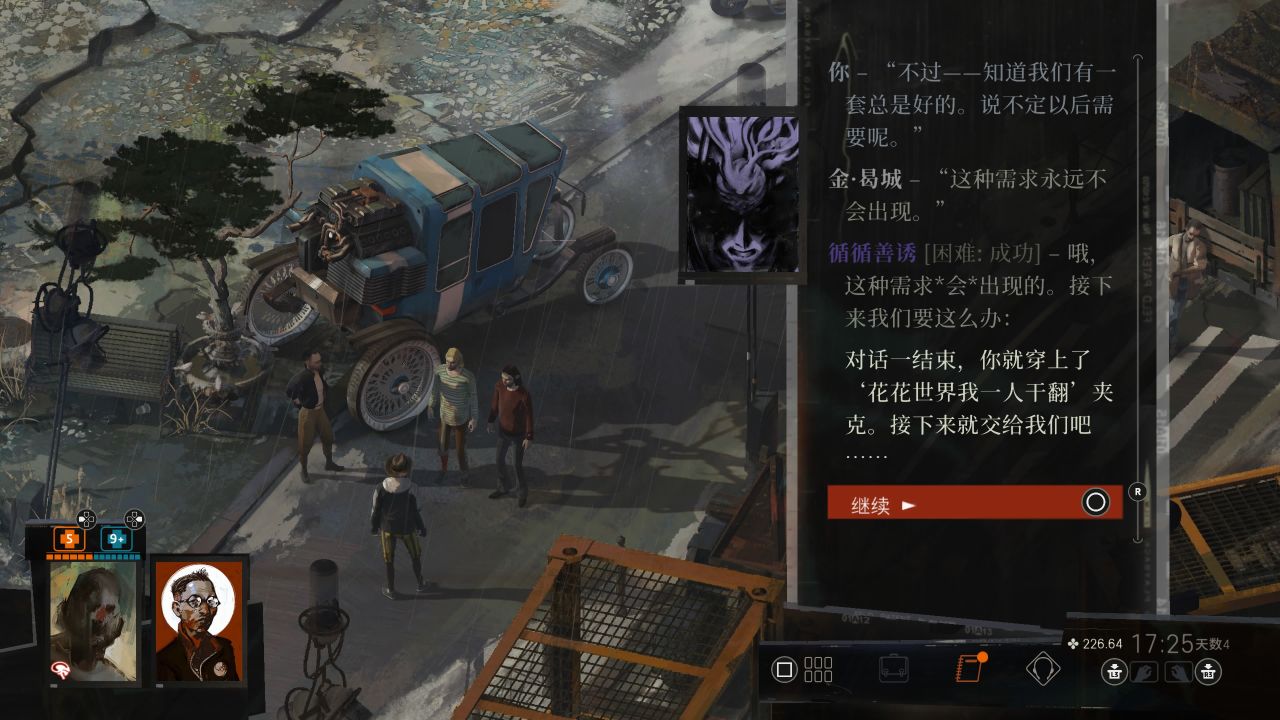 穿上夾克後觸發思維球(要求循循善誘≥8)並說服金媽媽穿上另一件。