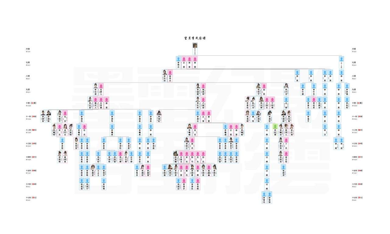 还有这个李家家族族谱,每次看到这个总能想起来CK3里面的宗族树,我最喜欢就是开局海格力斯➕多妻制,然后狂点生育,疯狂生,第一代国王还没死基本上后代就有一百多人了