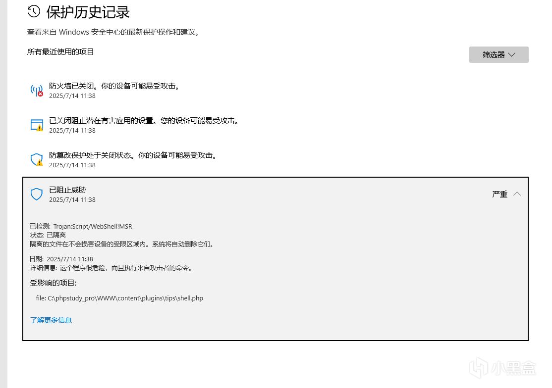 emmm 掃描過後想查看時,Windows安全中心搶先一步把後門殺了,只能去安全中心給後門白名單和恢復了