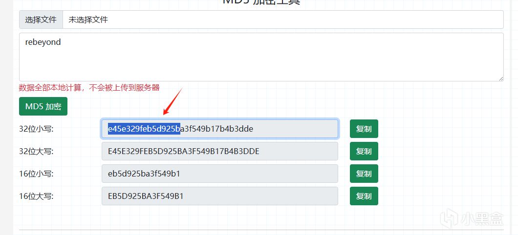 通過分析註釋可知這個key是經過MD5加密處理的,這邊驗證一下,可以發現跟註釋的一模一樣,所以密文就是這個rebeyond