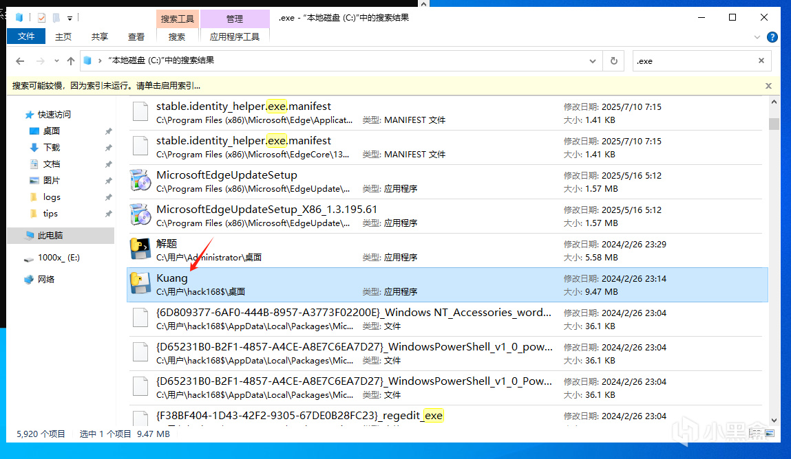 既然它是一個程序,那麼文件後綴基本就是exe了,直接在C盤搜索exe關鍵字