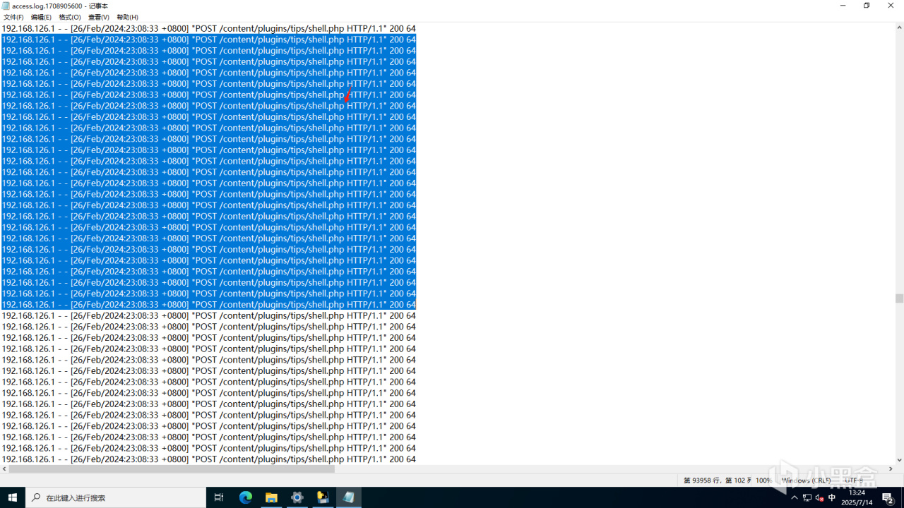 接近15萬行的信息,還沒劃多久,就遇到了惡意IP,這個IP在10分鐘內發起了近6000次的POST請求,並且還是302重定向,應該是在嘗試暴力破解,再往下劃,發現了他上傳後門的信息,這麼高頻率,估計是他構造了自動化腳本輔助上傳的,並且還上傳成功。根本不用想,這個IP就是攻擊者的IP
