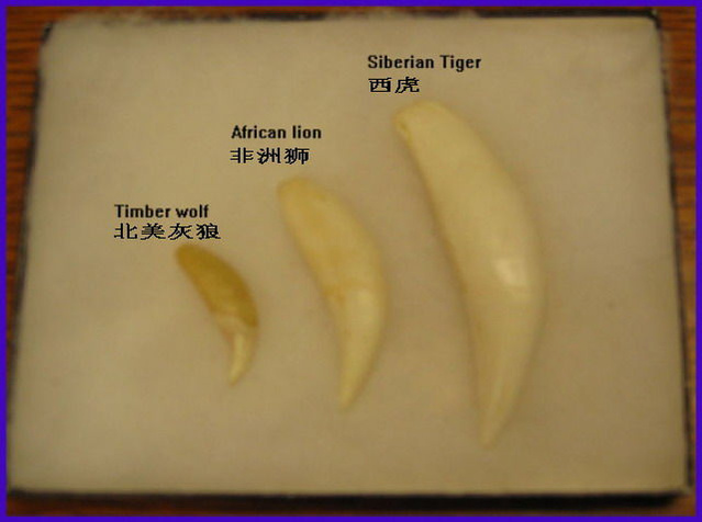 动物的装备自然是牙齿,老虎的牙齿平均长度比狮子要长1cm左右,并且咬合力更强,也因此,老虎的“锁喉”技能非常强大,可谓名声在外。