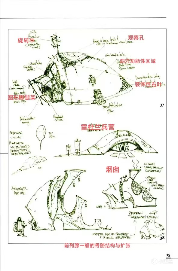 用於初始截圖的遊戲元素草圖,以及最終的拍攝結果。
