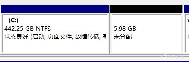 删除之后这个分区会变成黑色,即未分配状态: