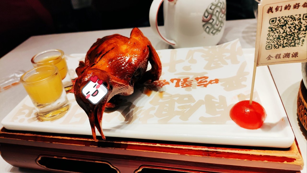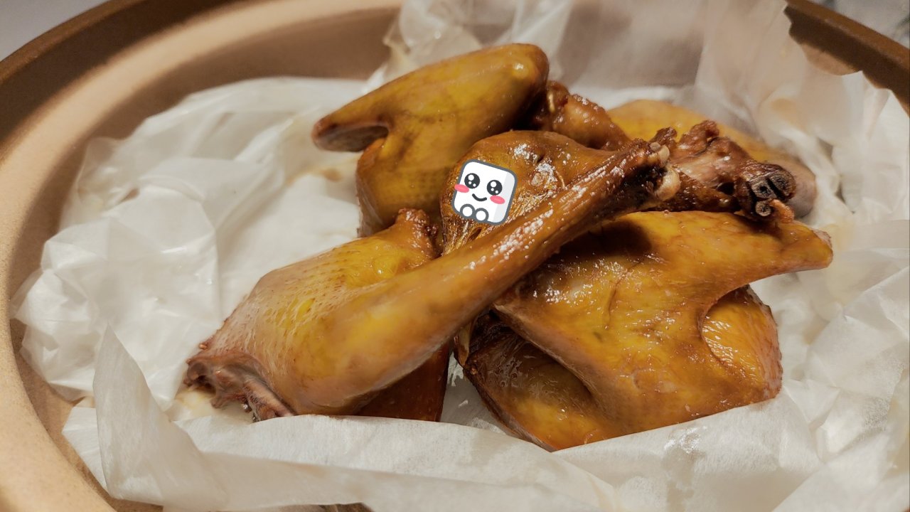 等了久久餐厅送的一只盐焗味的乳鸽!