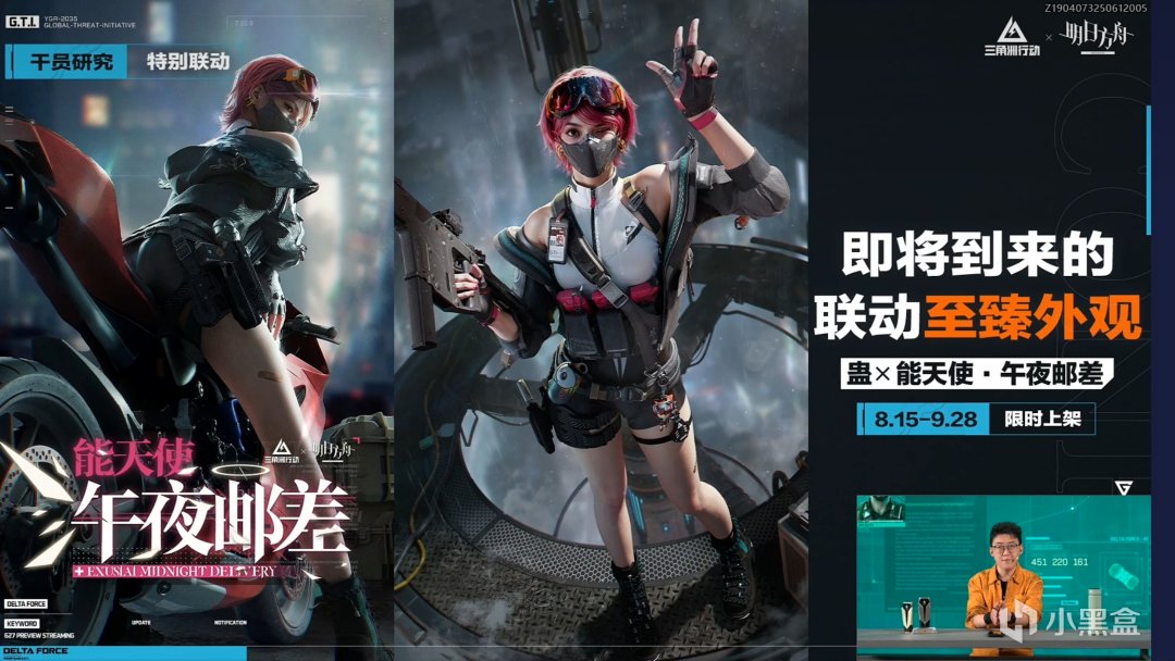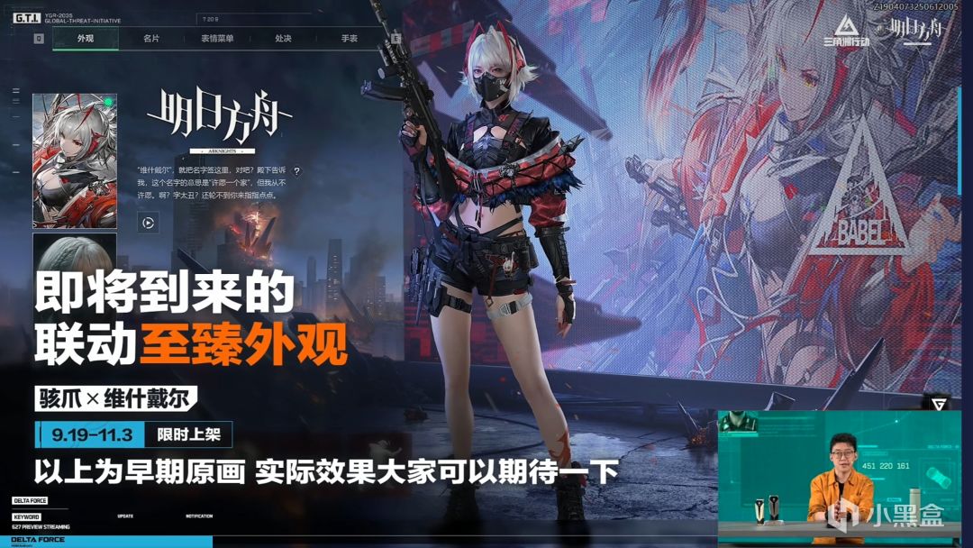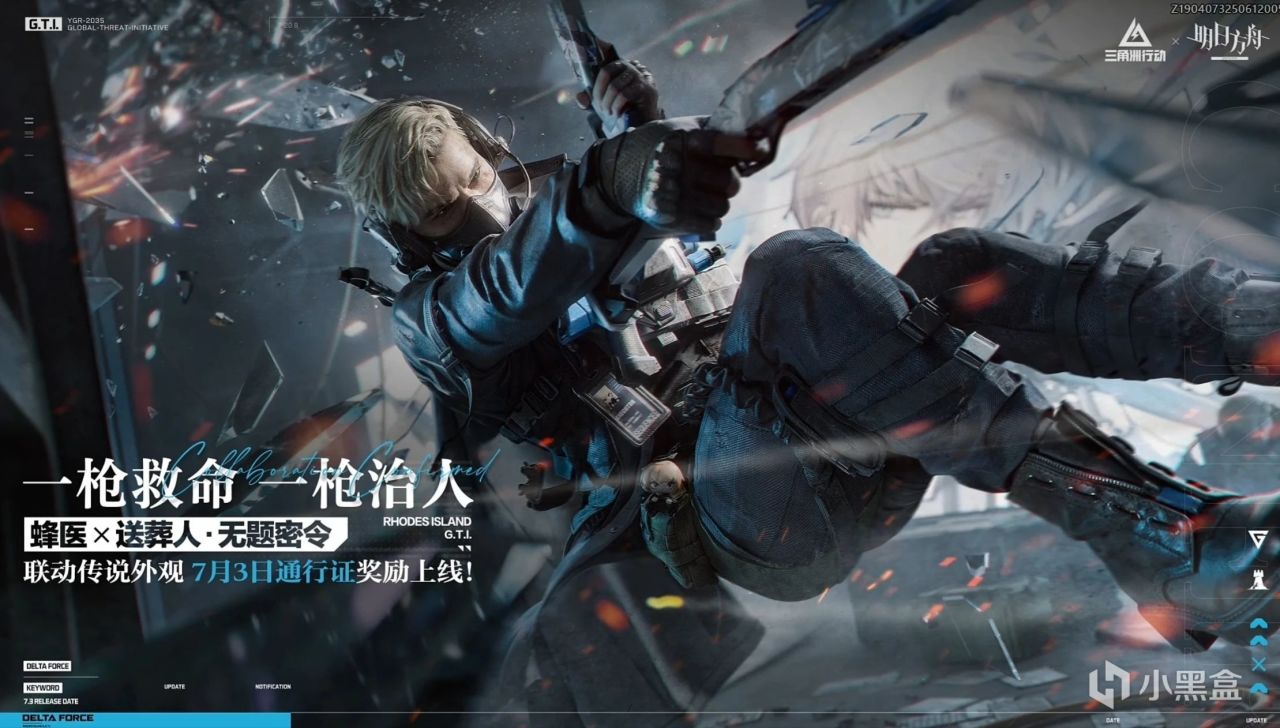 這次與明日方舟的聯動外觀,分別給到:蜂醫x送葬人·無題密令、露娜x黑·天際線、蠱x能天使·午夜郵差以及駭爪x維什戴爾。蜂醫 x 送葬人·無題密令的聯動傳說外觀將作爲通行證獎勵進行投放,玩家付費解鎖任意版本的通行證並達到一定等級後即可獲取。同時官方也給出了對應的福利:完成任務總共可免費獲得90張方洲研究券,總價值9000三角幣,並且限定抽獎券可以在三個紅皮池子中的任意一個池子使用。