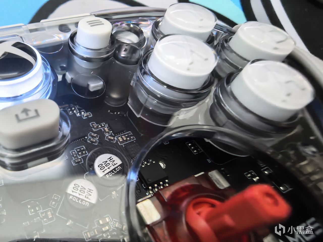 按鍵Xbox授權是沒有任何要求的,導電膠、微動、輕觸開關什麼的都可以,完全各憑本事,G7Pro的abxy、十字鍵都是採用了微動按鍵,比Xbox全家的鍋仔片十字鍵強太多了,手感清脆按起起來還挺解壓。
