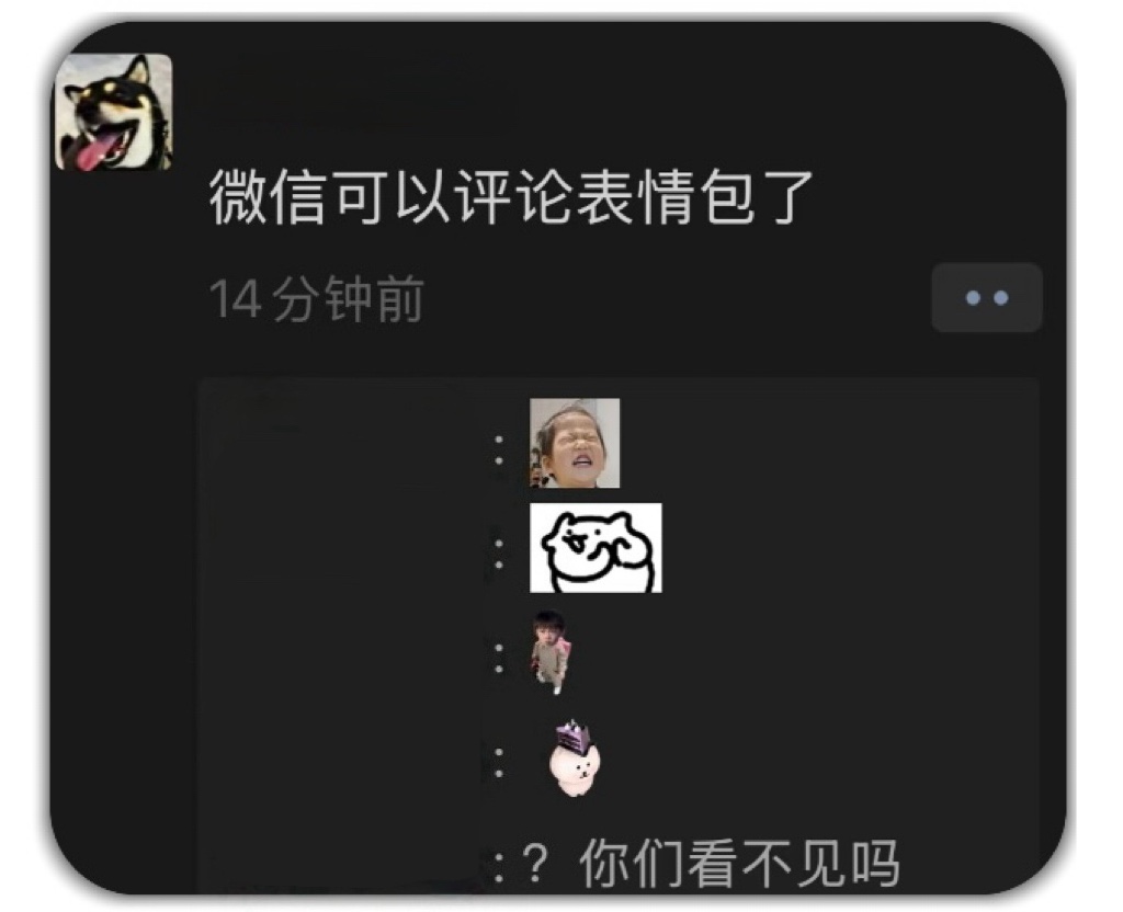 朋友圈评论区可以回复表情或图片啦!!(啊嘿嘿) 俺收藏的这么多表情和图片终于派上用途了 来吧 朋友 斗图吧 决一死战 俺宣布 你朋友圈被俺占领啦!!