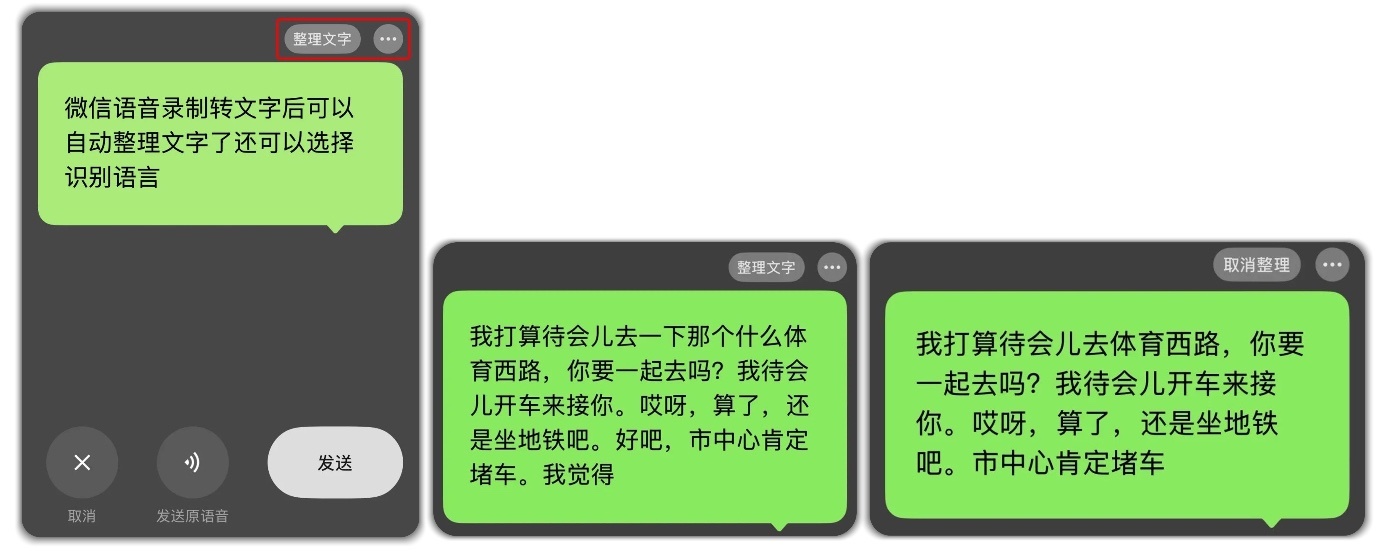 社恐 社交福利功能!整理文字功能哇!对语音输入的文字进行自动整理 对说话打结 顿挫 紧张的人来说就是福音啦 好爱! 如图: