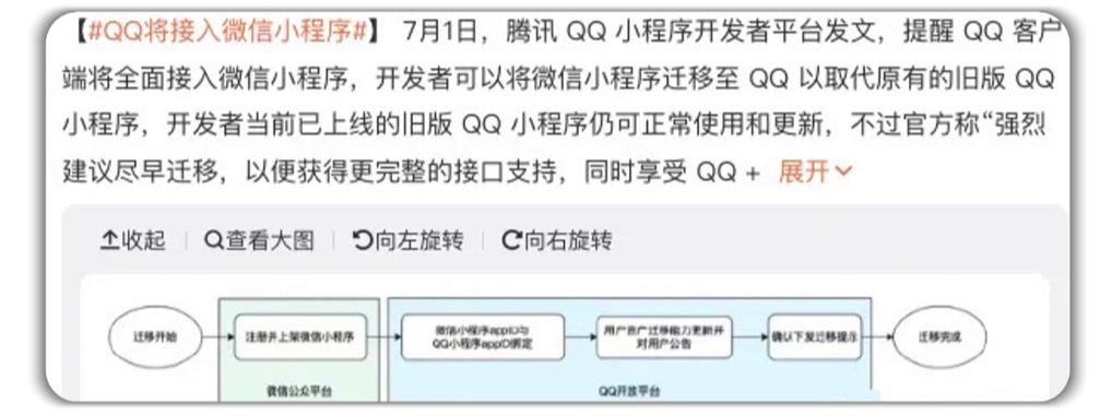 本月初,QQ小程序开发者平台发布公告 表示QQ将全面支持运营微信的小程序!