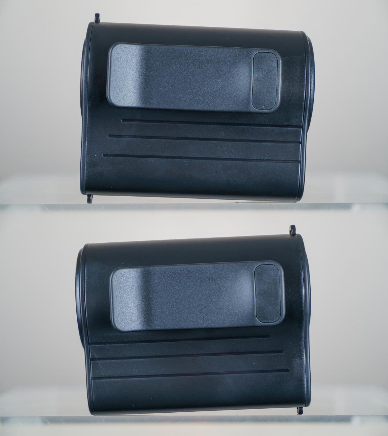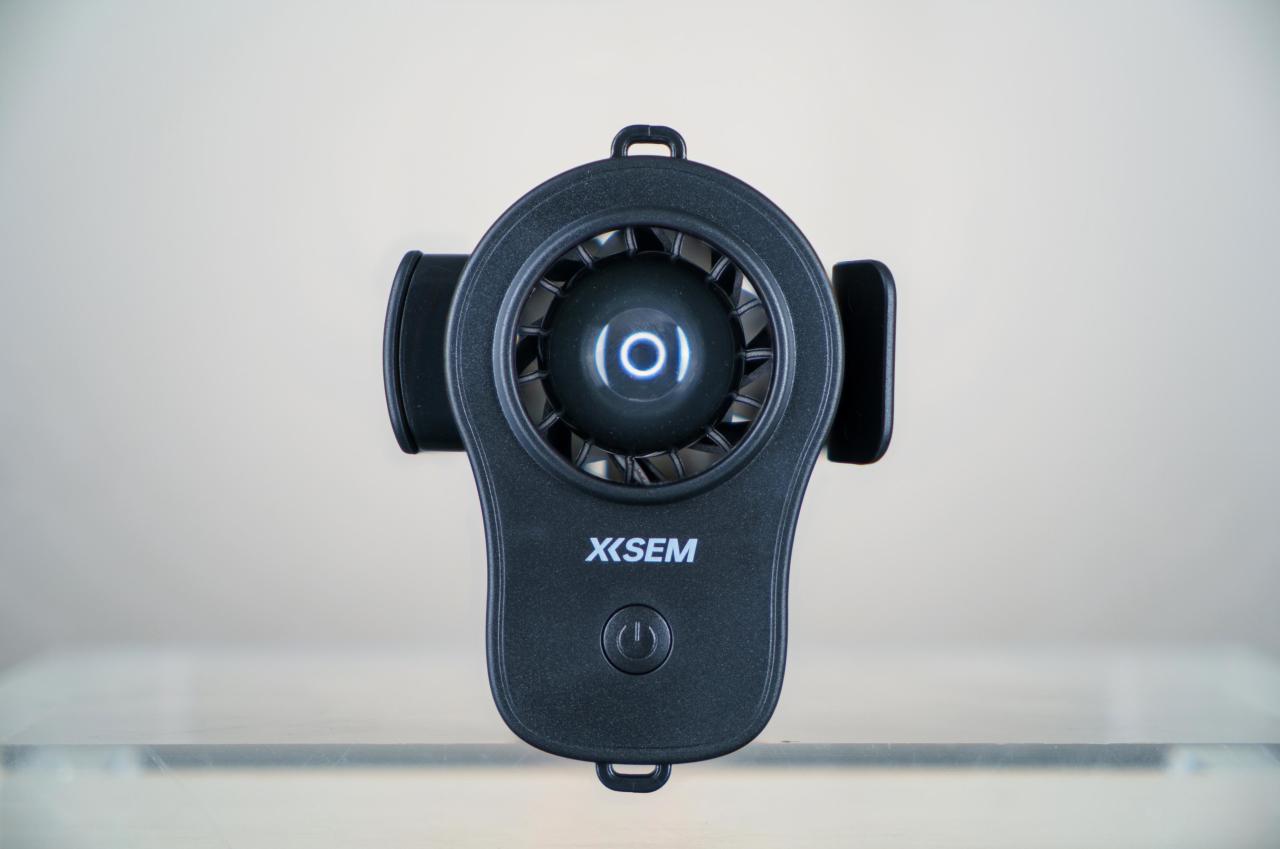 ▼正面有一个开关机/档位切换按键和出风口,出风口处有一个半球形的导流罩,可以让流经的空气更加集中,它同时还集成了一个LED显示屏,可以显示风力档位和剩余电量;上下还有挂绳环,搭配标配的挂绳可以挂在脖子上使用