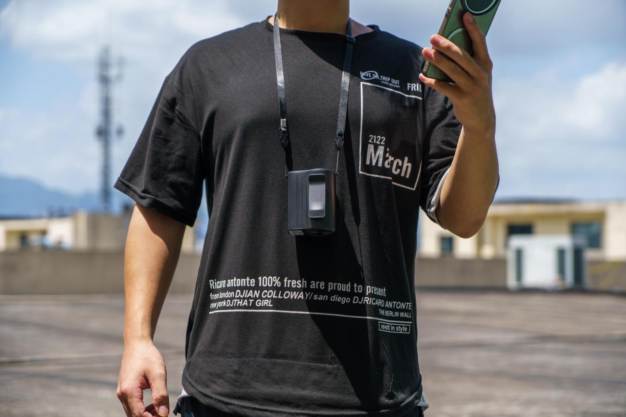 ▼除了腰挂,用标配的挂绳挂在脖子上使用或直接手持使用也很方便,单手就能轻松操作,握持手感还行,不是很挌手,可以拿的很稳