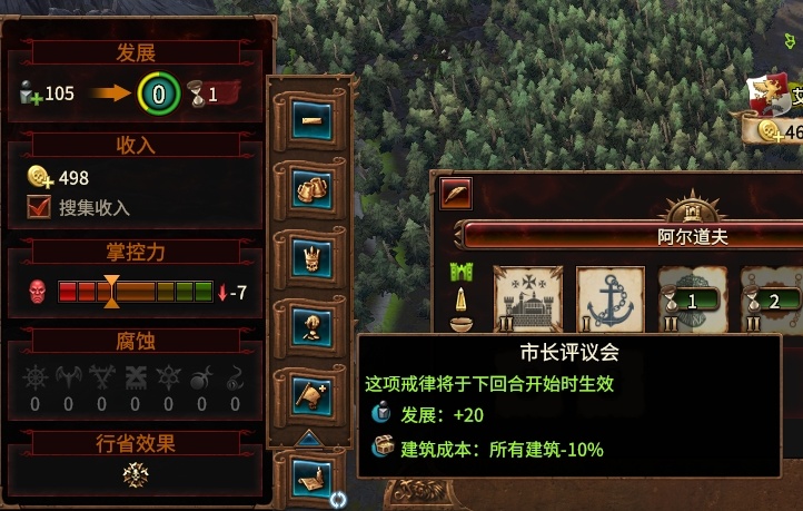 終於,來到了建築內政環節。小城最高只能升到三本且建築格子只有四格(包括一個固定的城鎮序列)。