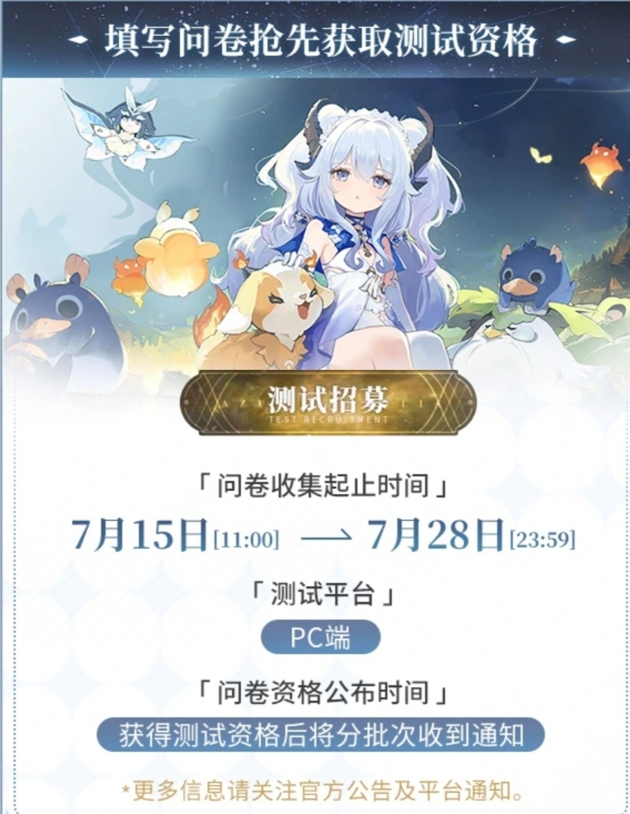 测试招募时间:7月15日11:00起至7月28日23:59。