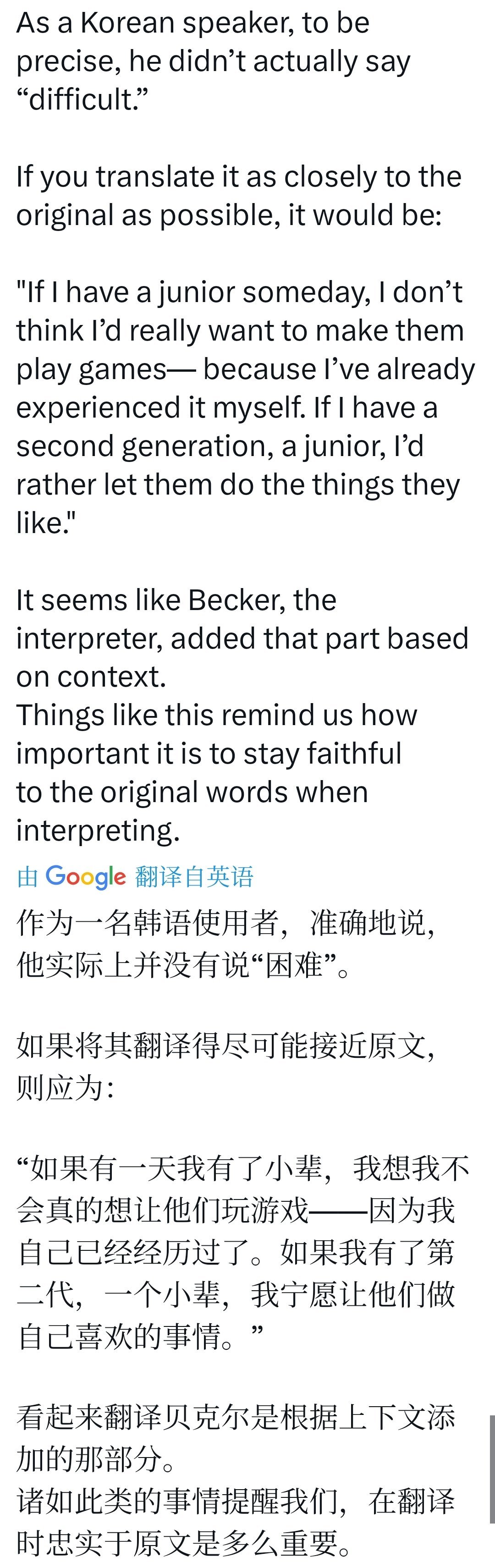 Faker 提到,他“真正地”體驗過職業電競選手的生活——一年只有大約 30 天的休息時間,沒有固定的“週末”或“晚間”休息,對學業和社交造成了極大影響。如果孩子沒有和他一樣的心理素質和抗壓能力,成爲職業選手將是“非常艱難”的道路。