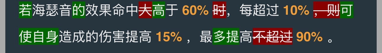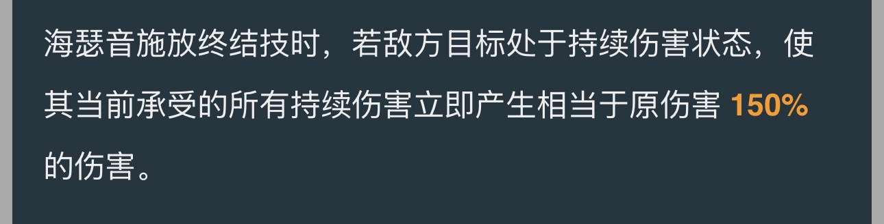 E1:海瑟音在場時,我方目標造成的持續傷害爲原傷害的 124%