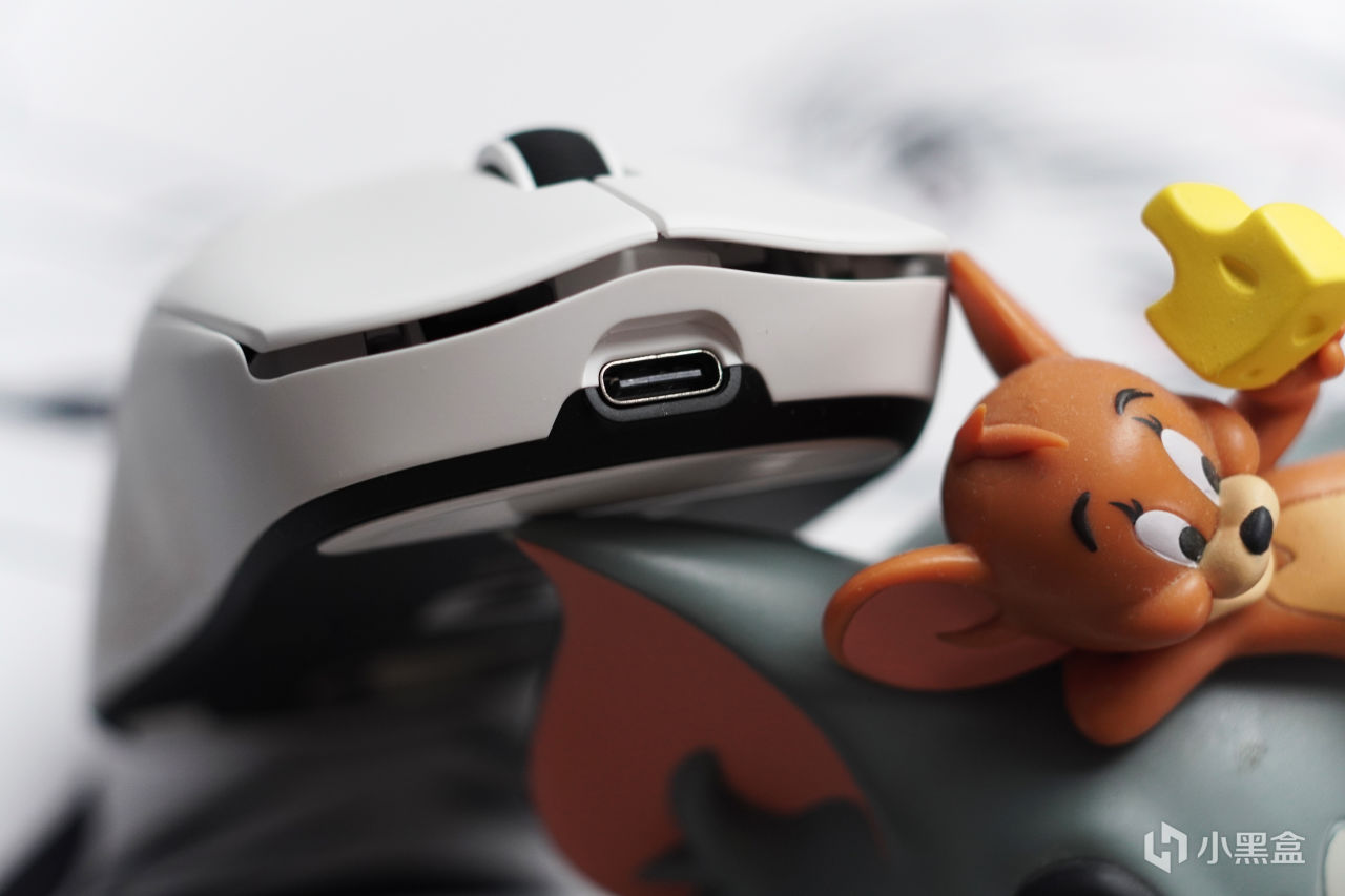 在鼠標前面可以看到M3PRO採用的是Type-C接口,淺開槽的設計也能讓它能夠兼容其它數據線。