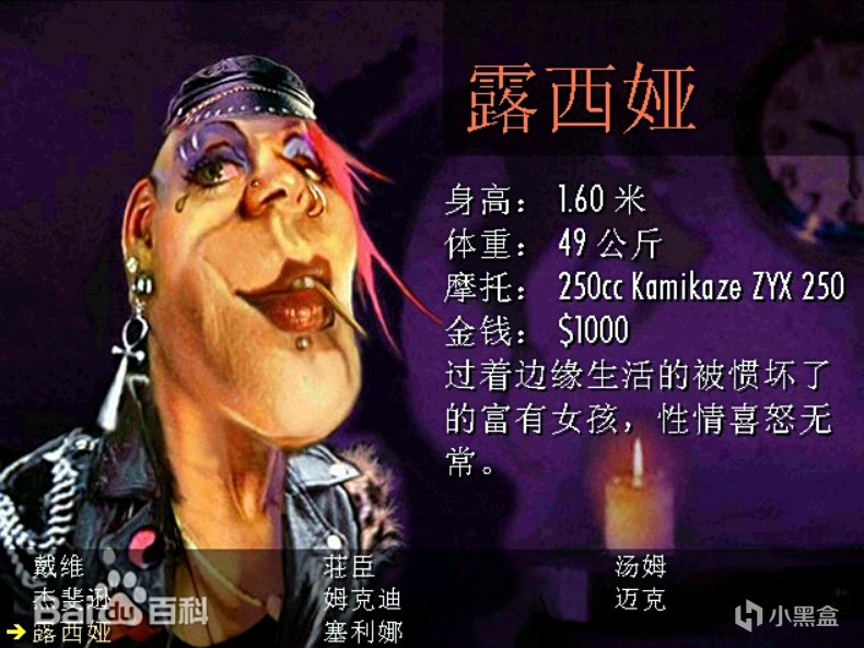游戏中的角色设计也深受灵感来源影响。角色如烟熏妆的“赛琳娜”(外号“疯狗”,擅长领跑)、暴戾的“杰斐逊”(擅长拳头攻击)以及外表憨厚实则下狠手用铁棒的“庄臣”等,其夸张的造型和个性设定,都是对现实飞车党形象和当时流行文化中叛逆偶像的一种虚拟映射和提炼。开发团队在反复测试和调整中,不断打磨游戏的节奏,确保竞速的紧张刺激感和格斗的爽快发泄感达到平衡,并加入了警察追捕、沿途拾取武器等元素来丰富玩法内容和策略性。整个团队以一种目标明确但又不失实验甚至“玩闹”心态的状态工作,敢于尝试各种看似荒诞的想法,最终在克服了技术限制并统一了设计方向后,于1991年在世嘉MD平台推出了初代《Road Rash》,其独特的“速度+暴力”玩法瞬间吸引了玩家注意。后来在1996年,EA将初代游戏进行了画面和内容上的重制与增强(加入了上述真人过场等),推出了唯一的PC版本,正是这个版本通过盗版光盘在中国等地的广泛传播,成为了无数玩家记忆中的经典。
