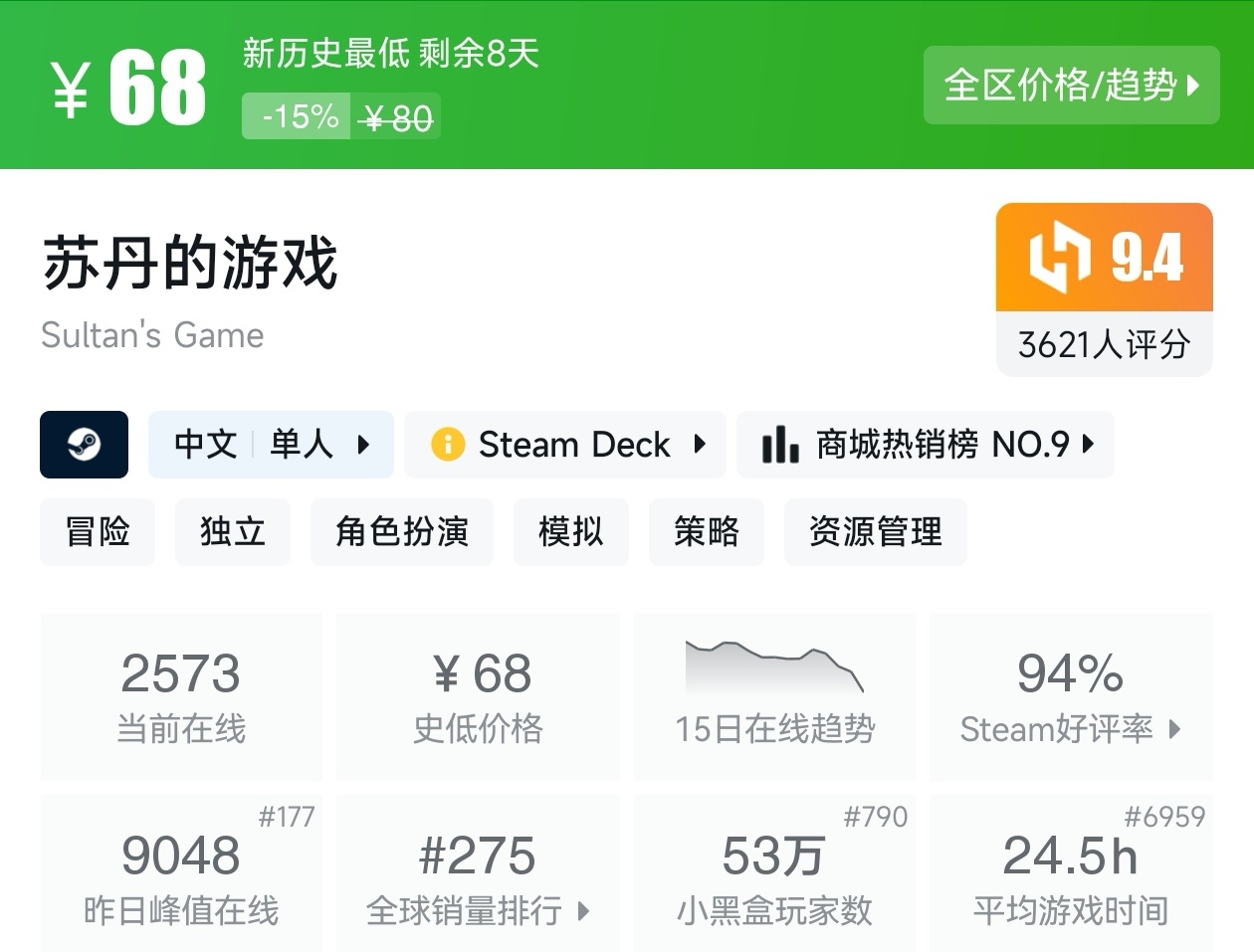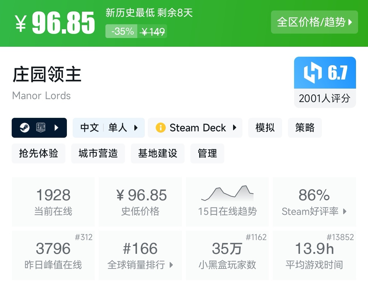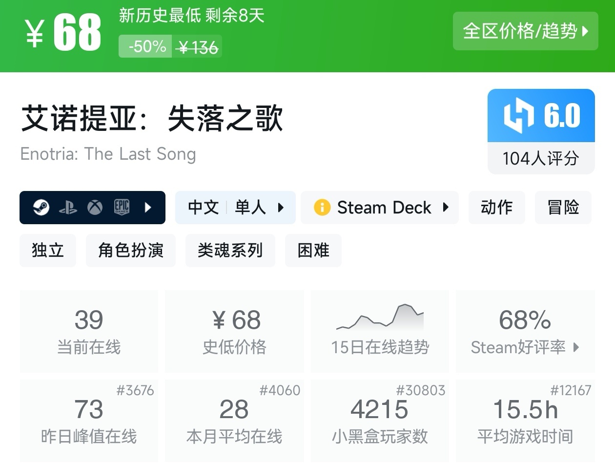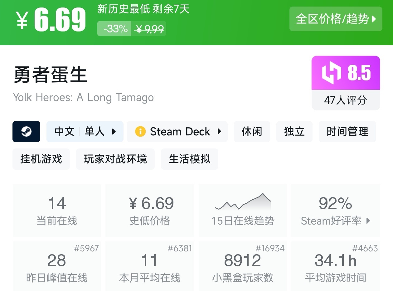 大家好,没错,又是我,你们的老朋友亦然,最近这不是Steam又迎来一个游戏节,当然,随着游戏节的到来就有不少的游戏迎来了新史低,其实新史低的游戏买起来最有安全感,至少在很长一段时间都不会更低,我将为各位进行一个汇总,希望我的汇总,能够帮助各位盒友挑选心仪的游戏。