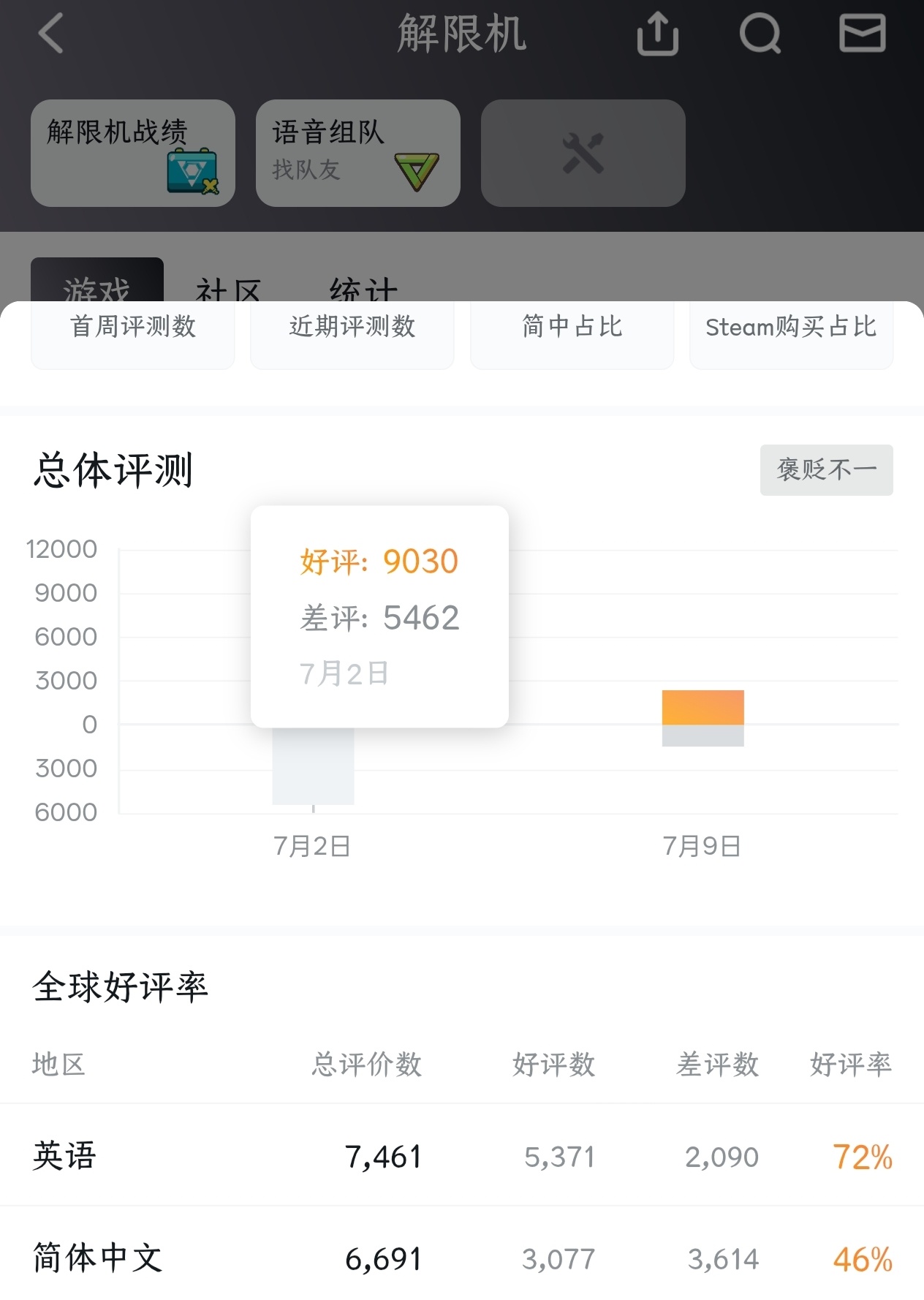 另一方面,游戏的出海相当成功,如果仅仅从Steam评价看海外占比甚至要大于国区,这对于国内游戏市场也是个利好消息——虽然是以一种不太成功的方式进行外宣。