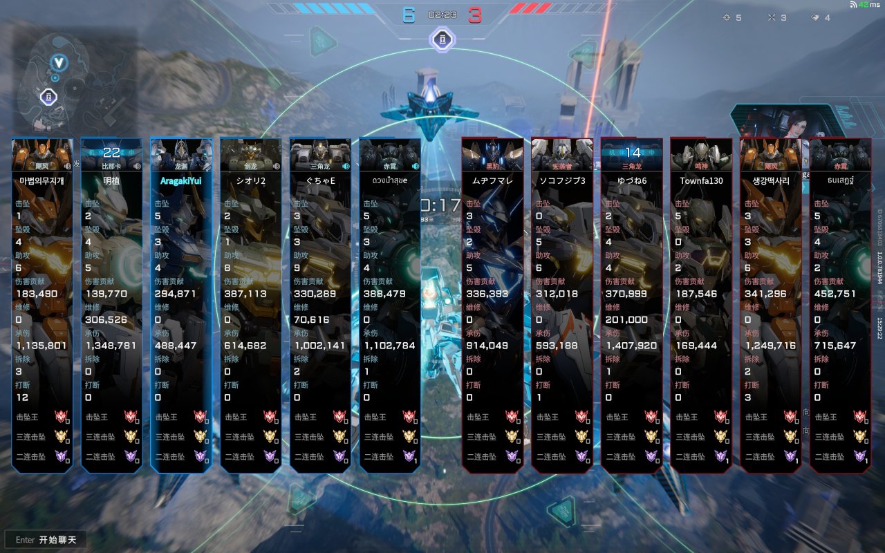 其实游戏在底层设计上做的相当优秀,多模组的机甲战斗体验、不同机体间的功能区分,围绕此设计了一个拥有不同角色定位、非常多地图的6V6大战场——有一些朋友把本作称作是「OW代餐」,除了都有肥硕的鼙鼓以外便是这个原因了。