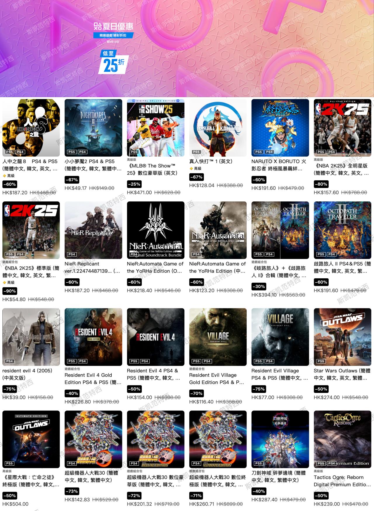 索尼PlayStation港服商店現已開啓夏日遊戲優惠,《怪物獵人 荒野》8折,《劍星》71折,《艾爾登法環》6折,《地平線5》8折,本次遊戲優惠封面疑似有筆誤(“4月13日”),應該是部分遊戲優惠截至7月30日,部分遊戲優惠截至8月13日,有需要的朋友可以關注下。