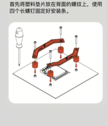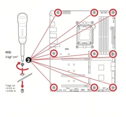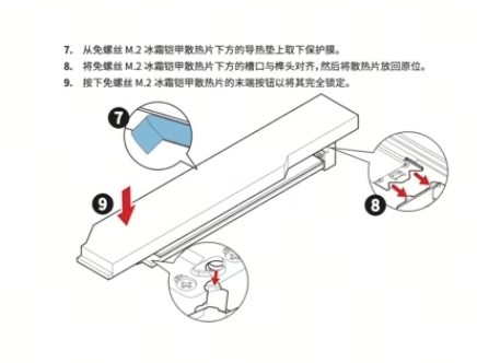 当然如果你的主板没有散热马甲,那么就不用这么多步骤,对准插上后再拧螺丝即可