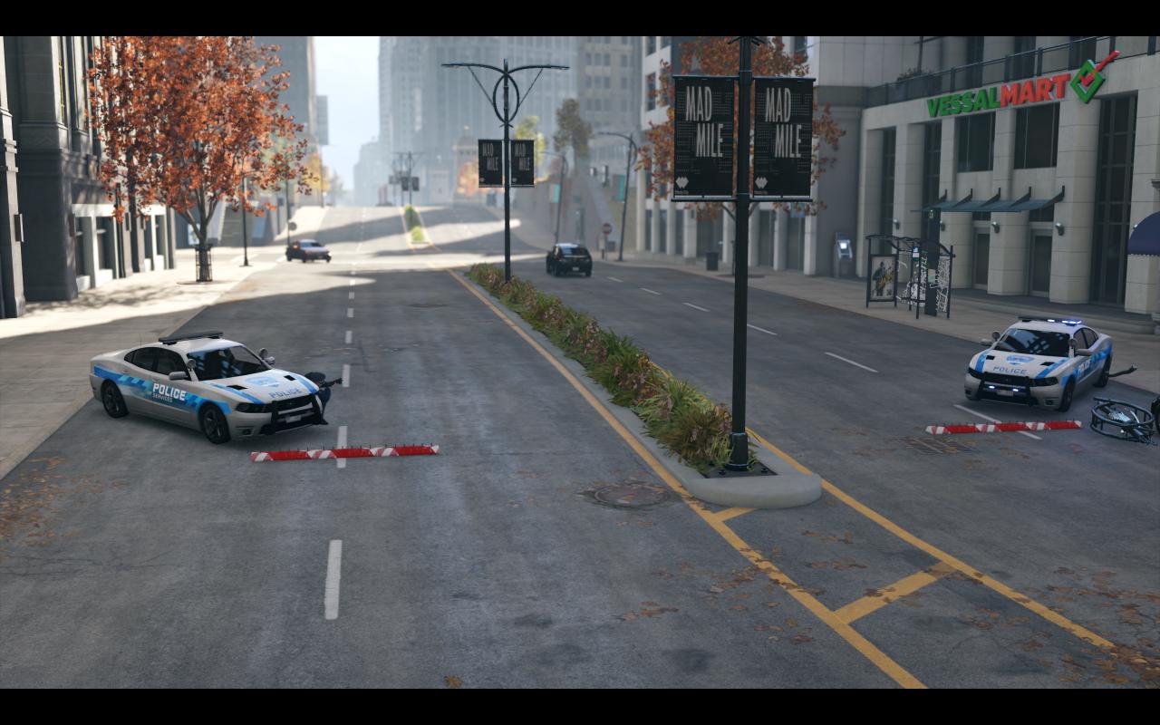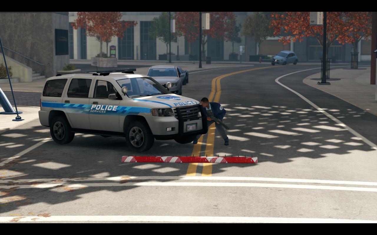 在不出意外的情况下,会有两三辆空闲的巡逻车立刻赶往艾登的位置。在最低级别响应的都只是普通的芝加哥基层警员,他们会驾驶一辆“卡范尔”警用巡逻车抵达现场,这辆车作为芝加哥警方的首选巡逻车辆,在加速上相比民用版要更加快速,但防御性非常低,对着它的侧面猛踩油门就能让它的引擎盖冒出浓烟。多亏cTOS系统的落实,即便这车速度不快但也依旧能够及时的赶到现场。