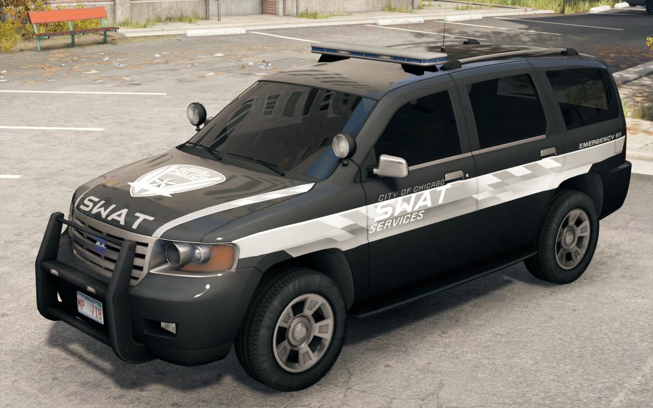 特警队在这一等级会正式出场,他们也乘坐“波拉”SUV,只不过涂装为黑白色。毕竟芝加哥政府实在不能为了一个黑客就把国民警卫队叫过来。特警队作为打击恐怖犯罪的中坚力量,在防护装备和武器配置上要比一般警员好的多,他们使用的都是军用级的武器,射程覆盖更远。这些精通团队配合和特殊战术的队员会在抵达现场后会立刻组织好队形进行攻击。特警队员穿着深绿色的作战服,配带护膝,一套防弹背心和一个肩带,头部配备绿色的防弹头盔,在大腿左边有三个手榴弹挂载。使用MP5冲锋枪和M1014霰弹枪。
