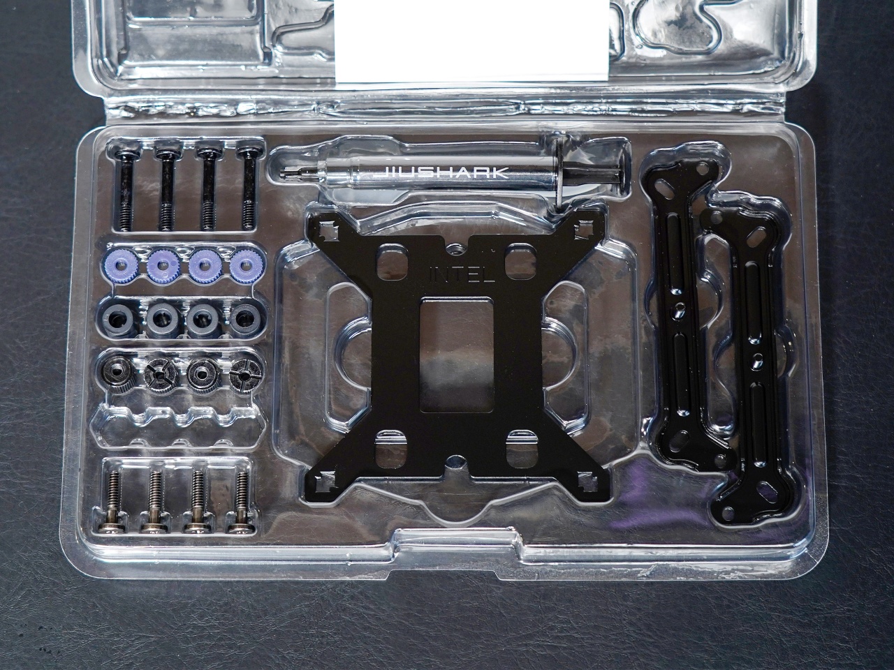 ▼打開紙盒,除了本體和說明書,扣具、螺柱、硅脂等配件採用固定模具塑封,非常整潔,取出來也很方便。