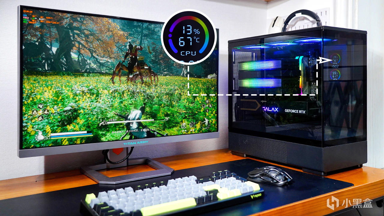 ▼遊戲基本都不會很喫CPU,CPU負荷較低,但顯卡散發出熱量造成機箱內部溫度升高,影響CPU散熱器的解熱能力。經過實測,在長時間的遊戲環境,CPU溫度都是65~70°C(機箱自帶屏幕,可以顯示溫度),不會降低CPU頻率,影響遊戲的流暢度。