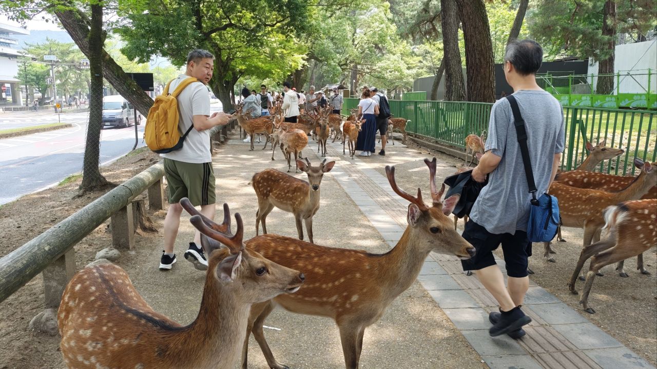 到了奈良肯定要看看鹿,我们去的那天天气不太好,下午下雨了,一下雨地上那些积水都是黄的,鹿的屎全化在水里了
