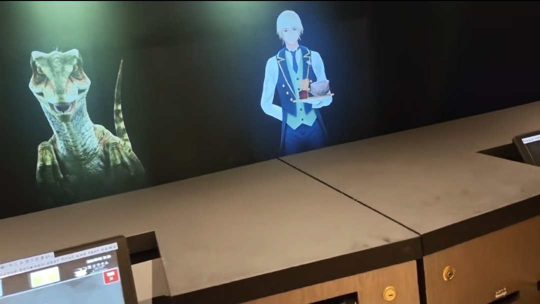 前台根本没有工作人员,只有两个虚拟形象指导你办理入住,不过其实工作人员就在这屏幕后面,看到你有困难还是会出来的