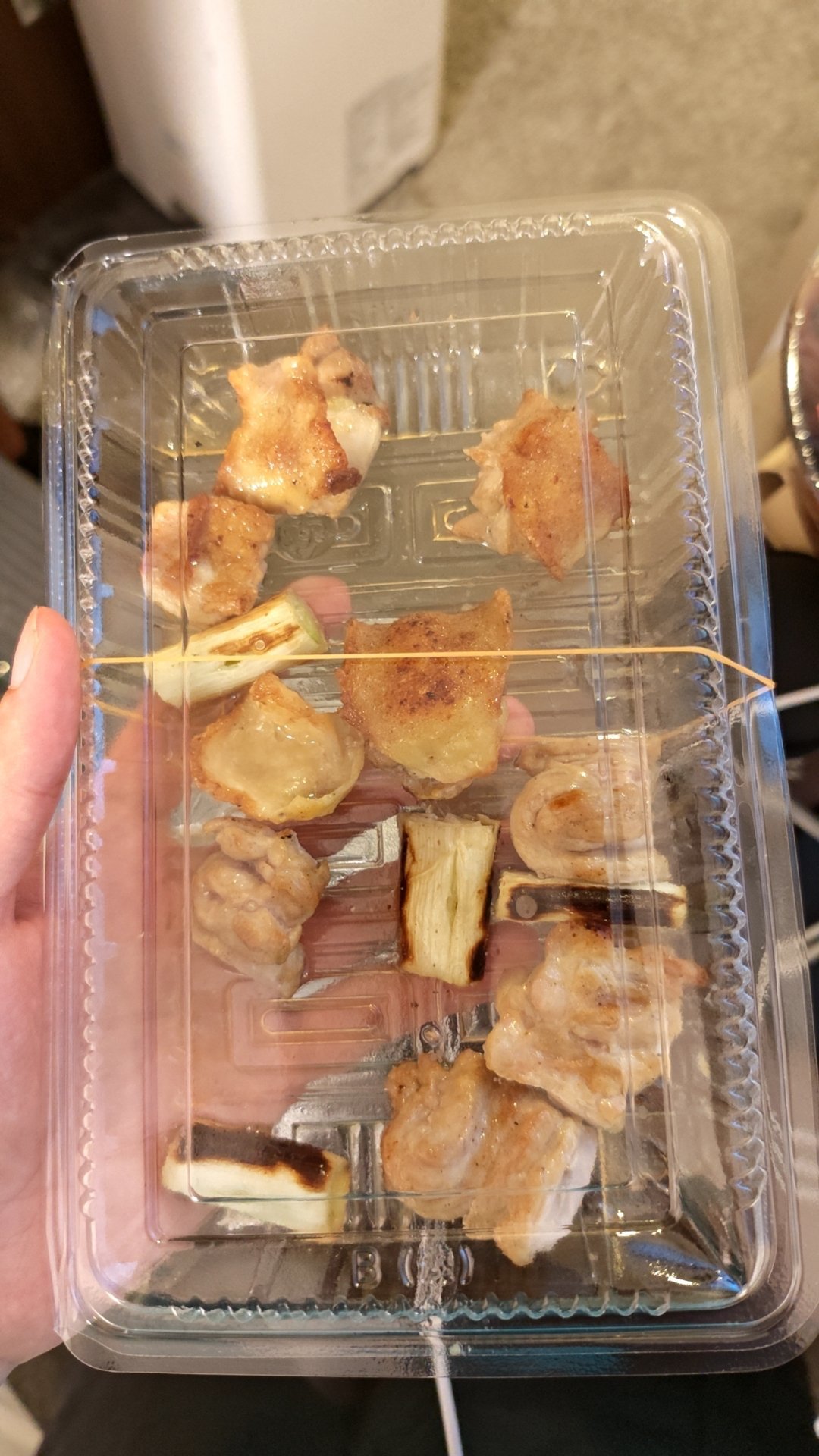 这个咖喱比我想的辣一点,不过味道不错,有两个人吃完晚饭过了一会又去酒店对面吃烧鸟去了,让他们给我带了一点尝尝味道,价格是真不便宜