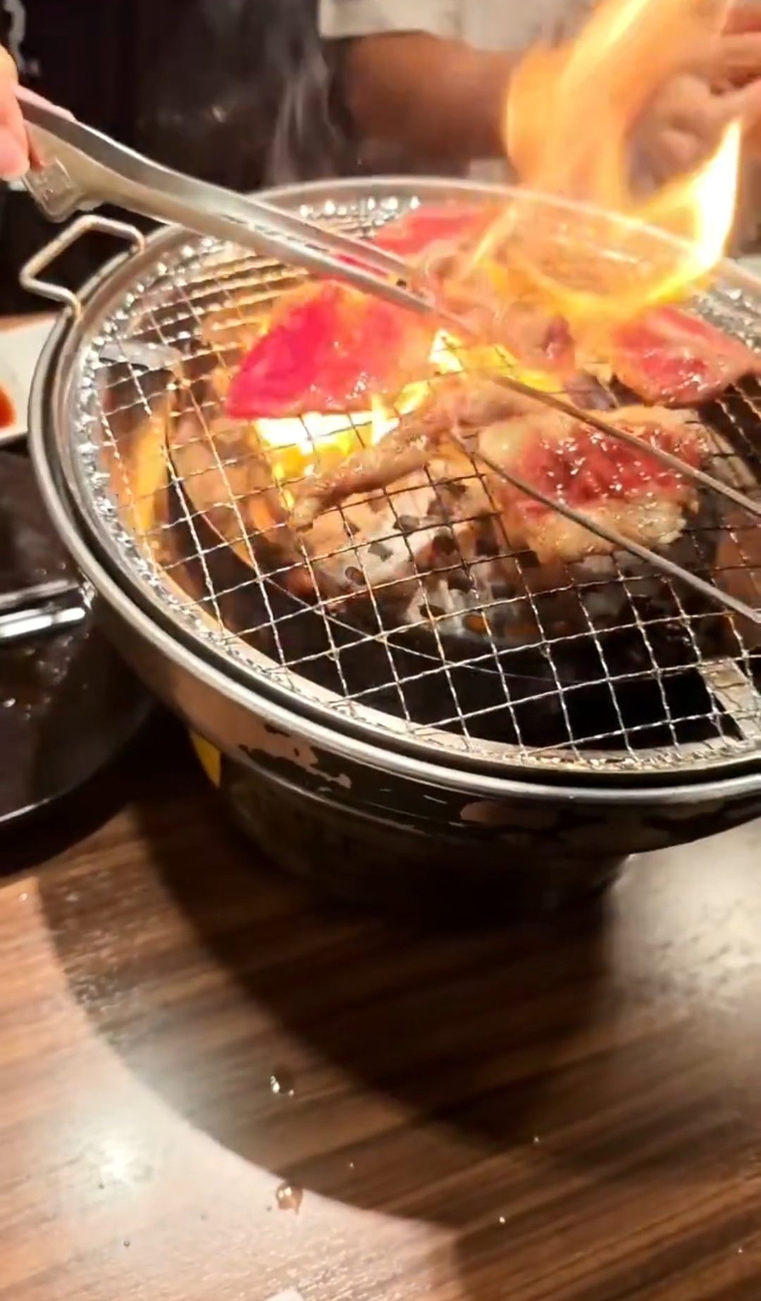 午饭他们都比较想吃烤肉,然后就找了家路边的烤肉店进去吃饭,感觉我好像还是第一次看到这种烤肉的火焰能蹦这么高的