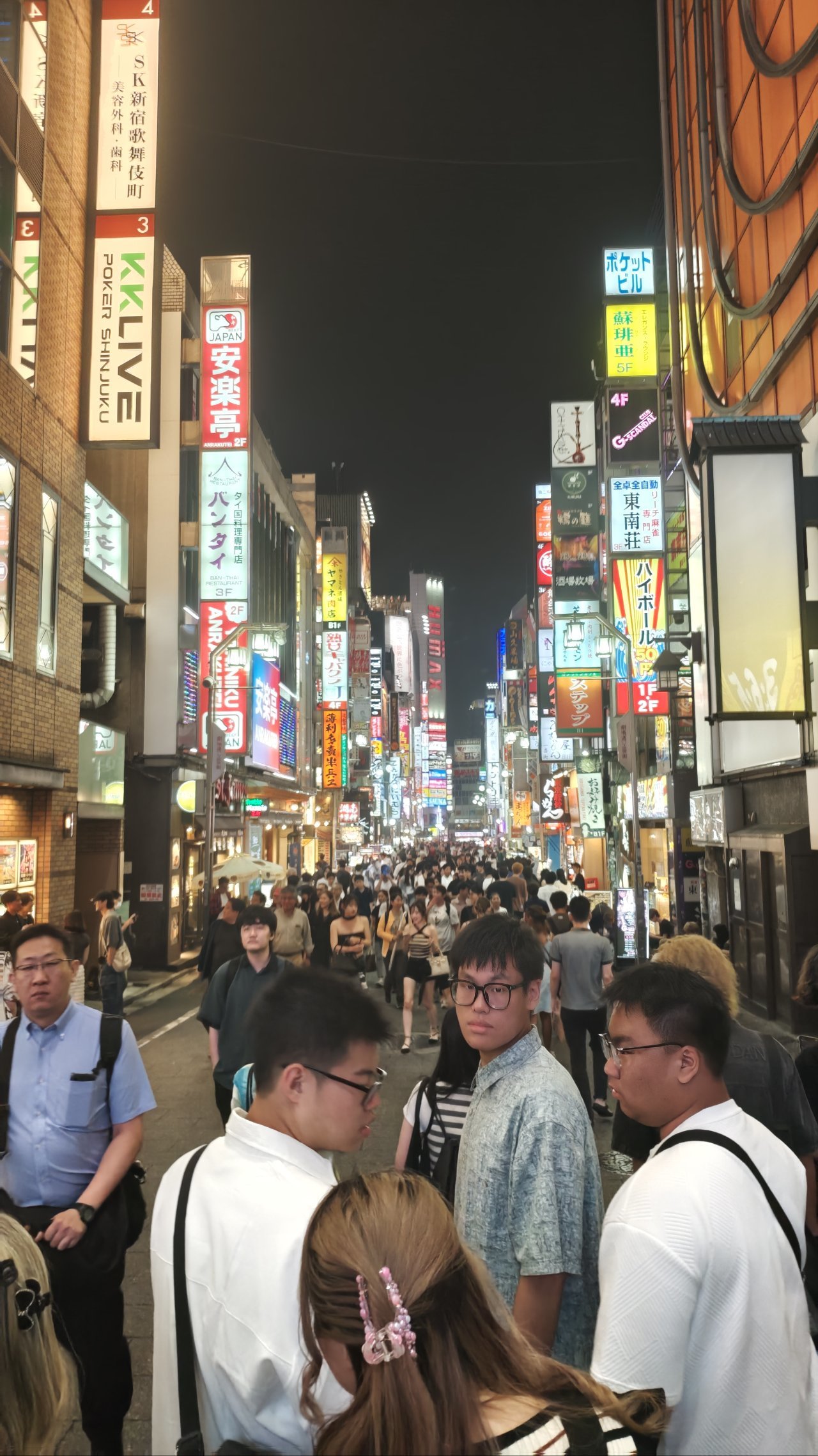 我们下午四点多到了东京,一起来的一个同学正好在这有认识的人,是他高二分班前的一个同学,之前来东京留学来了,现在还在语言学校里读,当时他正好有空,就到东京站附近来接我们来了,等我们去酒店放好了行李,他带我们去新宿逛了逛