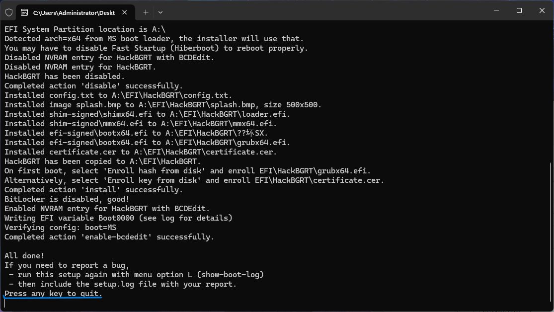 当出现下图中标注的那串英文时,就说明你修改成功了