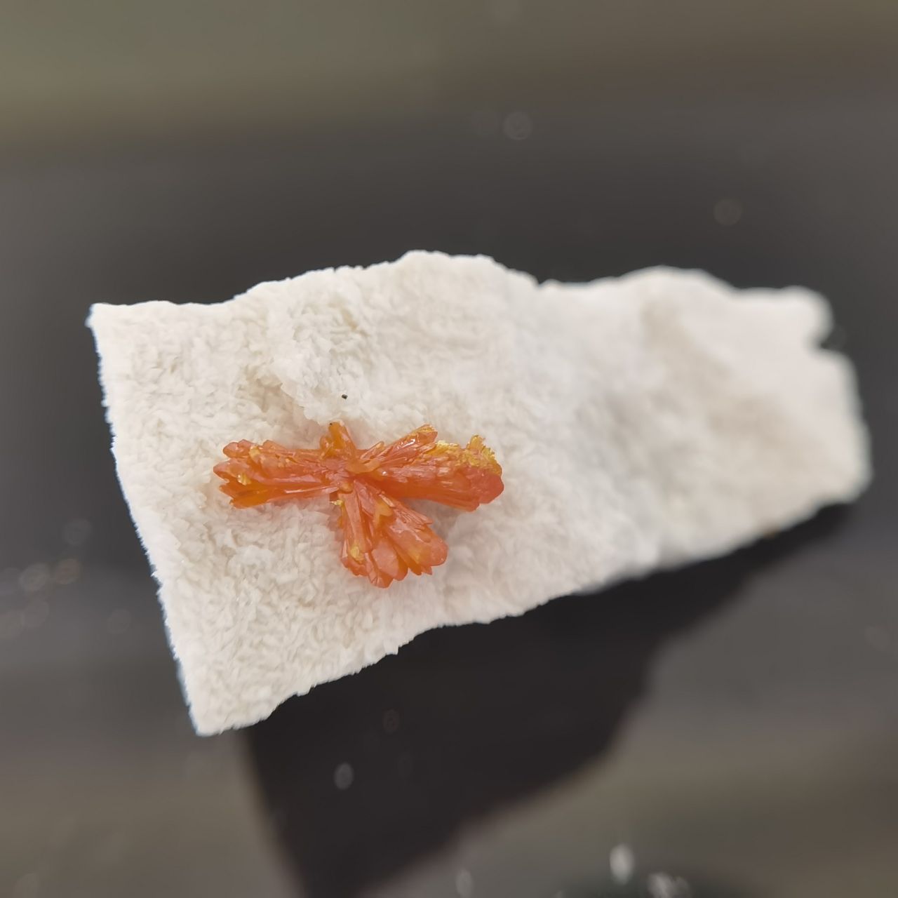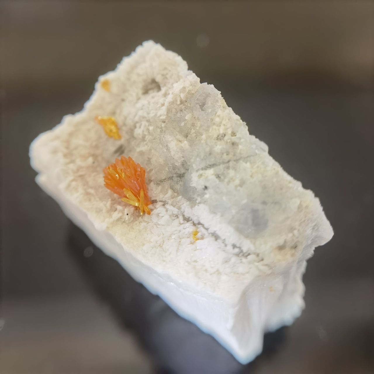 该矿物最早出现在2002年图森展,产地厄尔布鲁士铅锌矿并无太多资料,出的矿物也只有雌黄 重晶石 白云石三种。