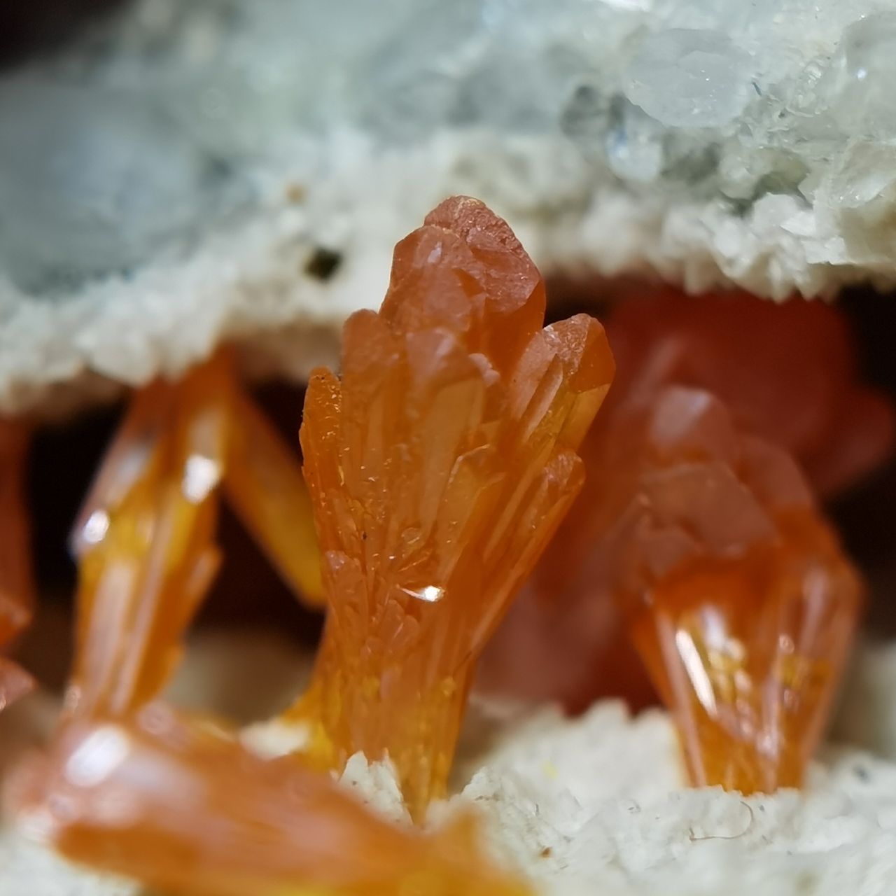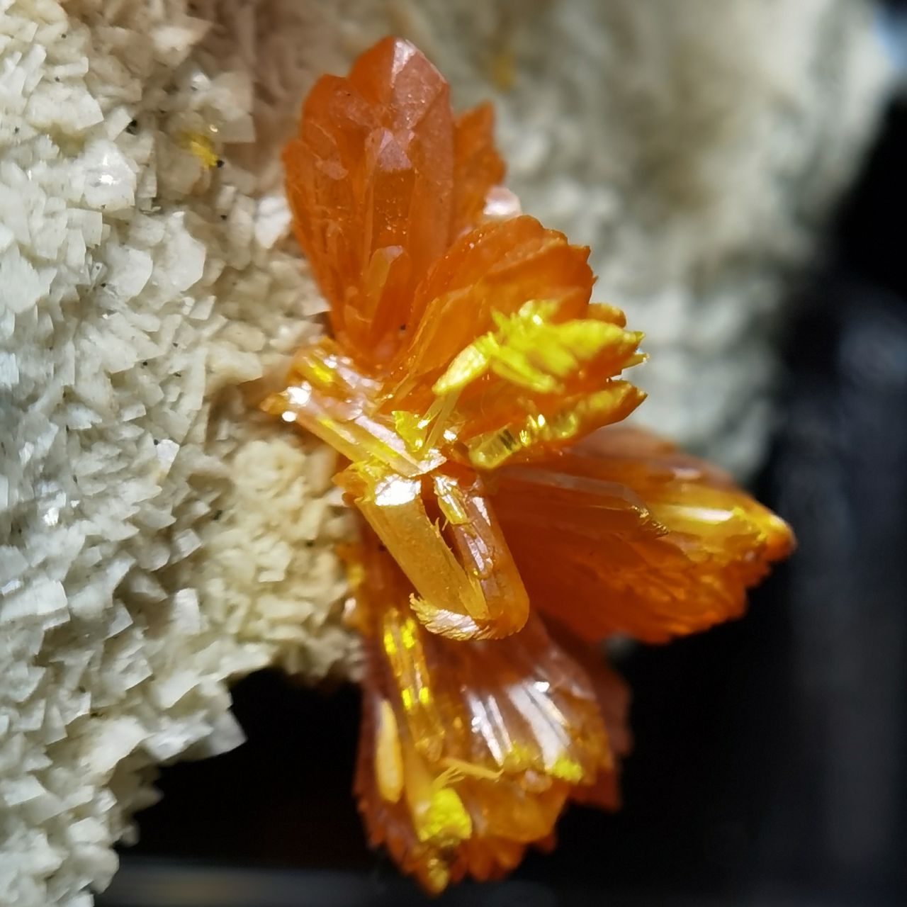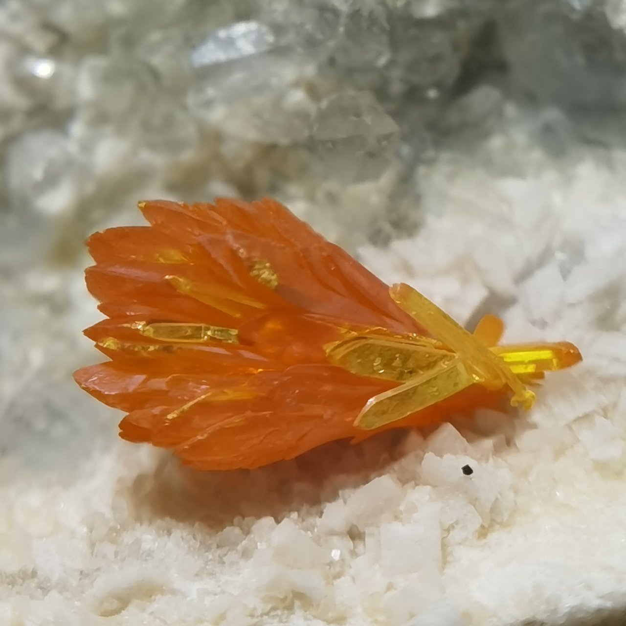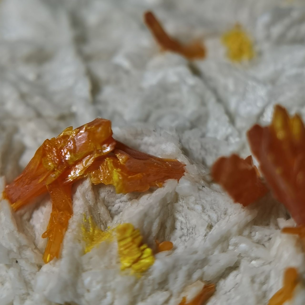 而更有意思的是当我翻阅厄尔布鲁士名称的由来时,发现该名称与波斯语有关,蕴含着“高山”与“闪耀”之意,象征着山顶积雪在阳光下的熠熠生辉,也和本期的矿物,雌黄在白云石/重晶石的衬托下熠熠生辉不谋而合。
