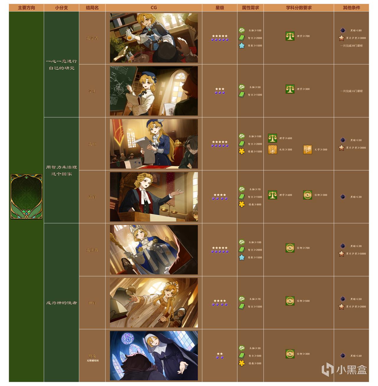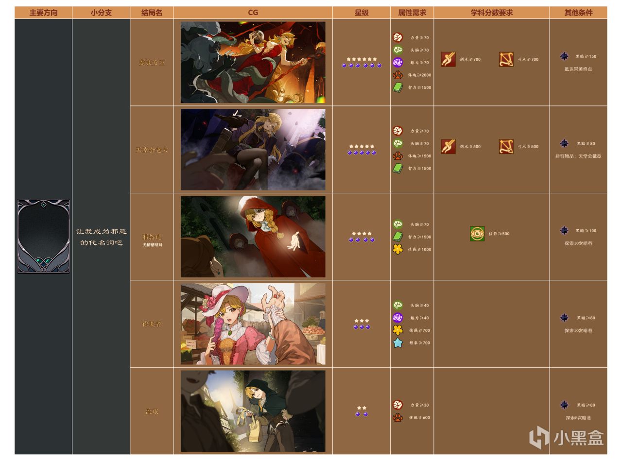 在選擇結局時,可以在 7 個大的主要方向中選擇任意一個,而在大方向中會有更多的小分支。