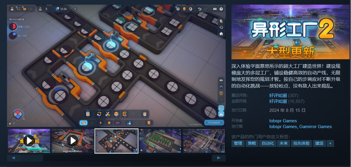 佳作的延續,自動化遊戲中如雷貫耳的存在。